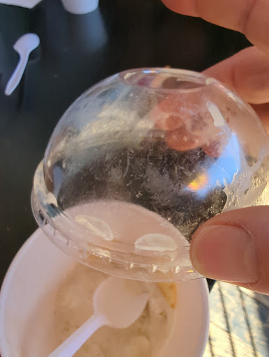 They also charge $1 for ice water, which is usually free at 99% of all restaurants in the world, and the lids that they put on the cups are dirty, which was not appetizing as they are clear plastic. It was not the shaved ice cream that dirtied the lids, they came dirty.