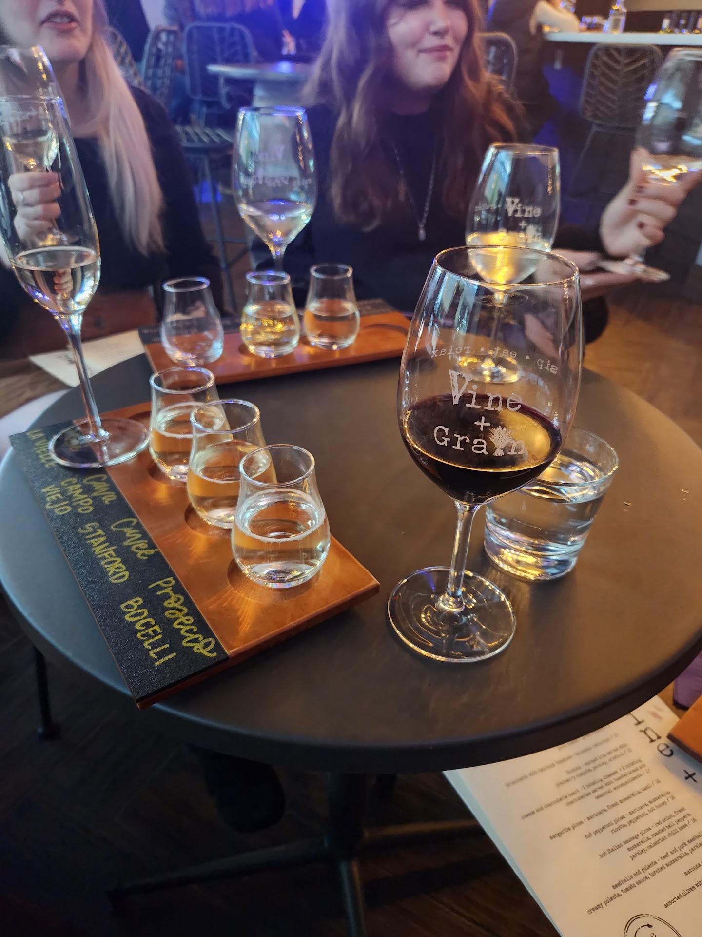 Read moreVine and grain was fun! Drinks were a solid 5 stars, where the food I would say was a 3 (a good 3!). Service was outstanding - the bartender was friendly and available as was the rest of the staff and we thought they were all good at their jobs. Atmosphere inside is awesome. Copy and modern. The patio can get noisy depending on what's going on around DOCO. We will be adding this to the rotation before...