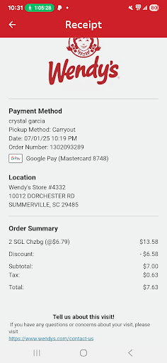 Read moreI am at the wendy's everyday I was in the drive thru tonight for 30 minutes the lady took my order read my order back to me and they still gave me non fresh food and spicy chicken nuggets that i only had 1 order of. I asked for 2 $5 biggie bags one was the double stack one with spicy chicken nuggets and strawberry Lemonade the other one was jr bacon cheese burgers without the patty with regular chicken nuggets and strawberry Lemonade. I was given all spicy chicken nuggets and cold food and I didn't realize my order was wrong till I got home. I am here everyday anybody their knows me by face sometimes I'm there twice a day. I spend way to much money for them to give me what they want to give me and not what I ask for. I've tried calling 6 times and it gets sent right to v.m. I'm very upset I waste so much time and money and still have to come home and cook my kids something to eat after waiting in line and paying for 2 meals. I worked 9 hours and was wiped out and just rather get something to eat out but it was a complete waste of time, gas and money. I just had spine surgery 26 days ago and don't have the energy after work to stand and...