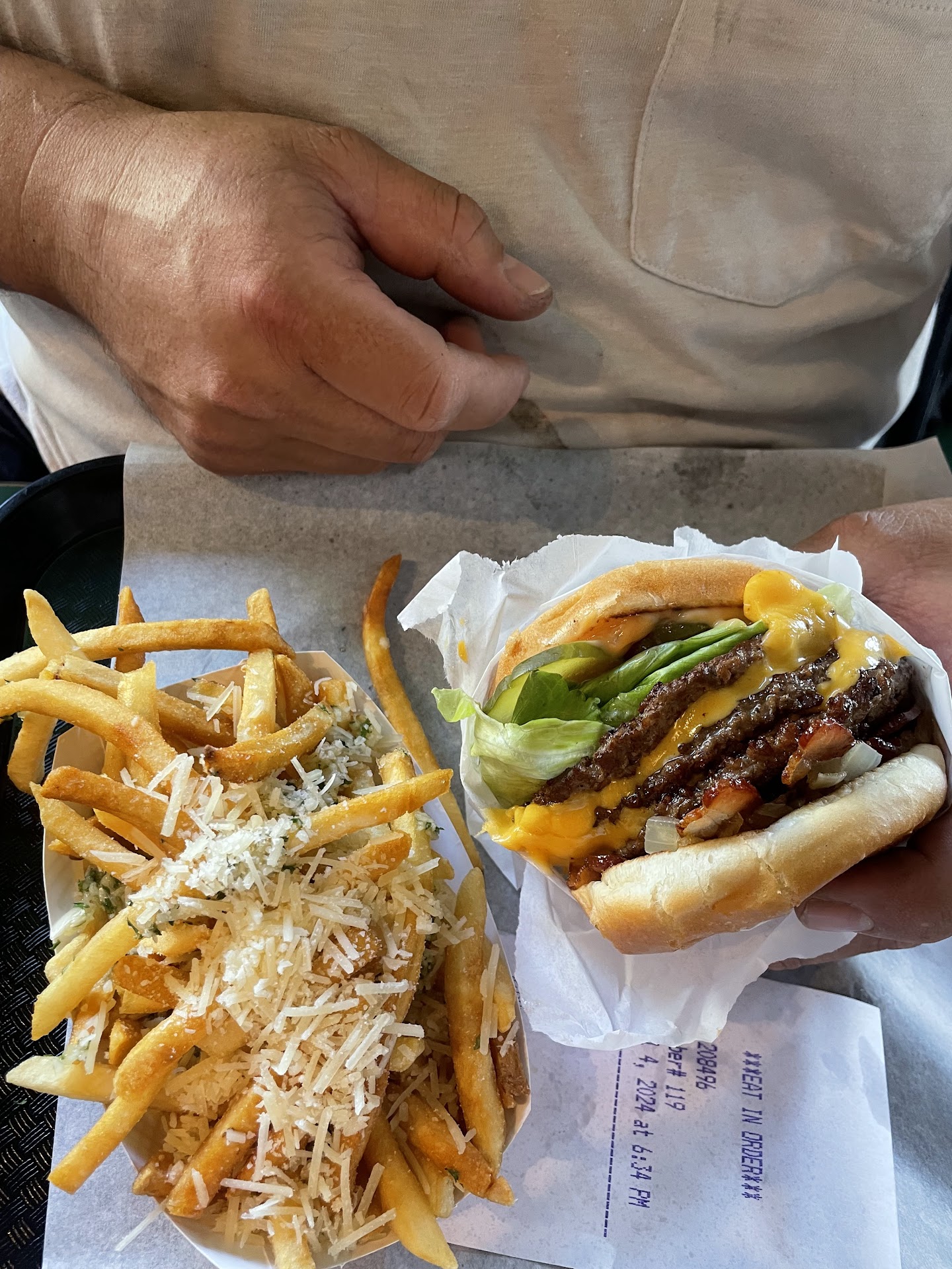 Read more4/5 This place was great. Me and my dad came on the Fourth of July because no other place was open and they were super busy but our food came out pretty quickly. I ordered double cheeseburger and it was great. I also ordered some regular fries and again no problems there. My dad ordered a triple cheeseburger and garlic fries and he said that they were hitting the spot! It was a classic burgers and fries joint with other options too. I saw they had hotdogs and some basic sandwiches like a Caprese and other options. The pricing was reasonable and I was happy with pretty much everything. My only complaint is that it was super hot in there but granted the Fourth of July this year fell on an extremely hot day and maybe their AC wasnât working. Donât worry, we still had a great meal and we will...