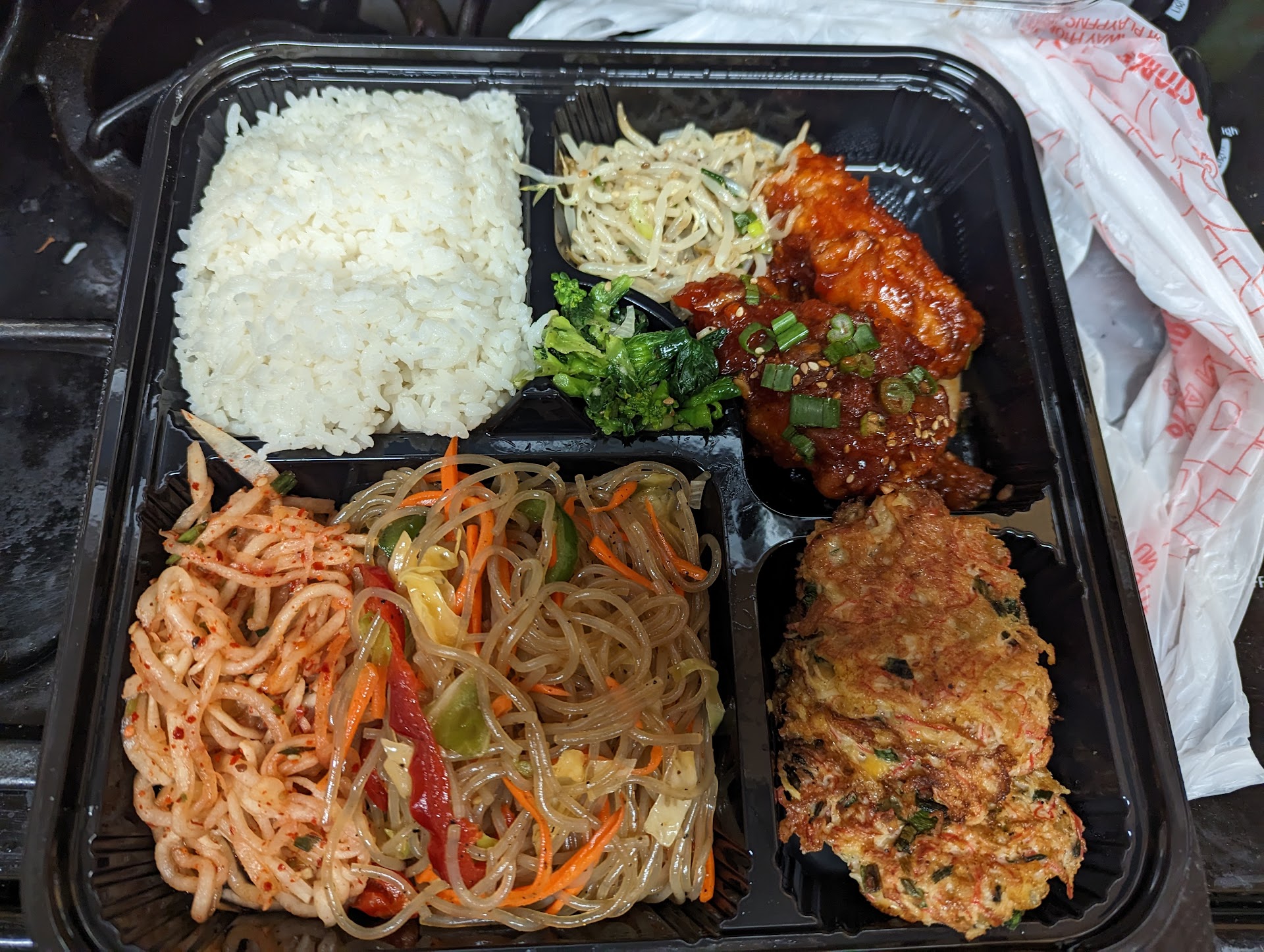 If you're looking for Korean food to go and this was the only place around then I guess I'd say it's an ok option if you're only looking to buy one thing. It's get an ok selection of Korean sides/entrees/dishes to make a meal out of. There are also other options that doesn't prompt the customization where you pick which sides/entrees you want and etc. The employee was rather nice as our order took quite some time to prep. Food was ok. It isn't anything exceptional but it does satisfy your Korean food cravings. Overall it's ok. I'd probably rather try the other places around first before getting...