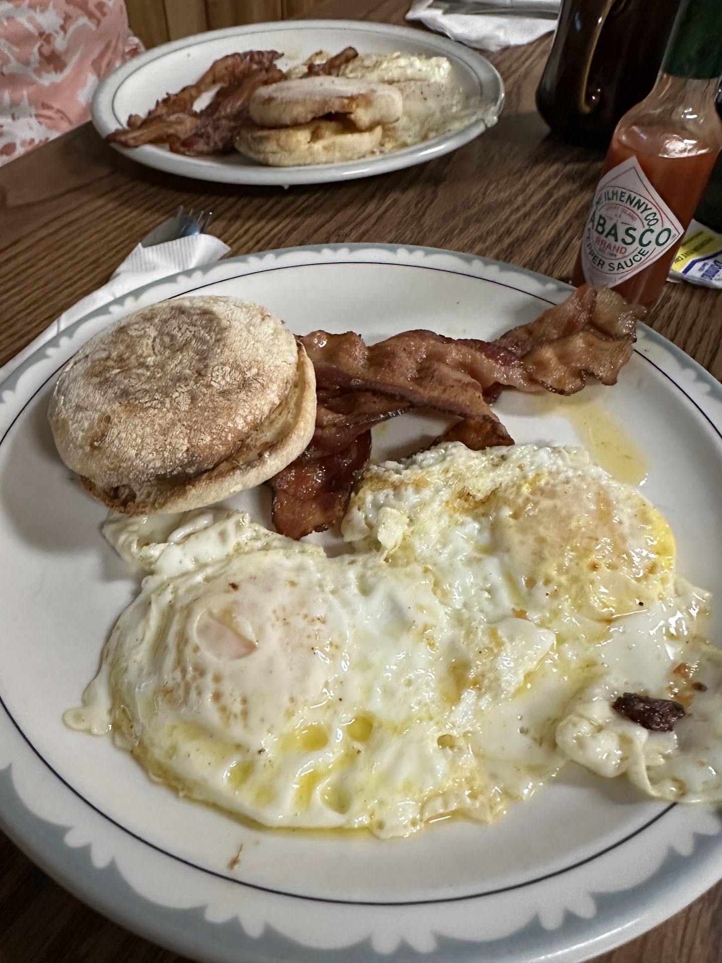 Eggs were cooked perfectly French toast was amazing Bacon little more on crunchy side than I would've like, but that would be my own fault for not letting them know when order was taken.