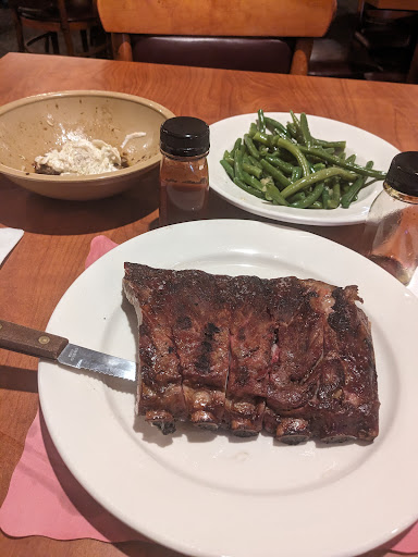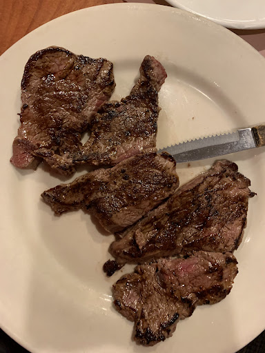 After a quick search in this new neighborhood I found this place. I read the reviews and felt comfortable with calling to speak about dinner reservations. Phone person was a bit short but no big deal I know in these Covid times everyone is short staffed. So I opted to sit outside. My server came to greet me and took my drink order. I settled on 1 dozen steamed clams, 1 bowl of split pea soup and prime rib from the family section of the menu. She then informed me there was no daily specials. So I went with the "broiled pork chops" which state they are thick and juicy. I asked chops medium rare (light pink center) and a baked potatoe with butter on the side. Clams arrived, and my sever then asked if I want lemon, yes please. Clams were cooked in a light broth with a small portion of melted butter.. Soup arrived and she then asked if I want bread. Soup was hearty and not one of the better soups I had. Chops arrived with my potatoe no butter, and a side of vegetables steamed. Cut into my chop and it was well done. So well done that when I cut into the chop the serated knife made little meat flakes. I looked for my server or any server and she was just not around... I waited till she returned and was polite and told her my situation. She returned with the manager who said she would cook me another plate of pork chops. I told her please no thank you and asked her to hurry with my bill as I had a up coming appointment. Never once did I say remove the meal from my check. She took a good while to return with my check and one chop on a plate with a Styrofoam container.