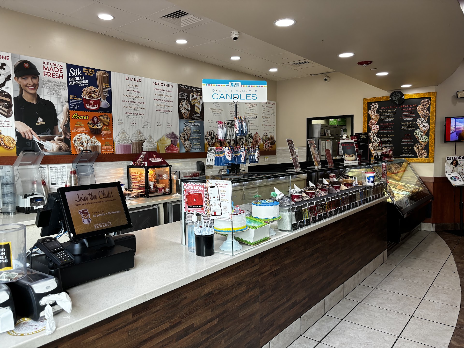Cold Stone Creamery is a bright, airy, cool and very clean creamery. So many treats to catch your eye. A catalog showcases the variety of cakes for every occasion.
