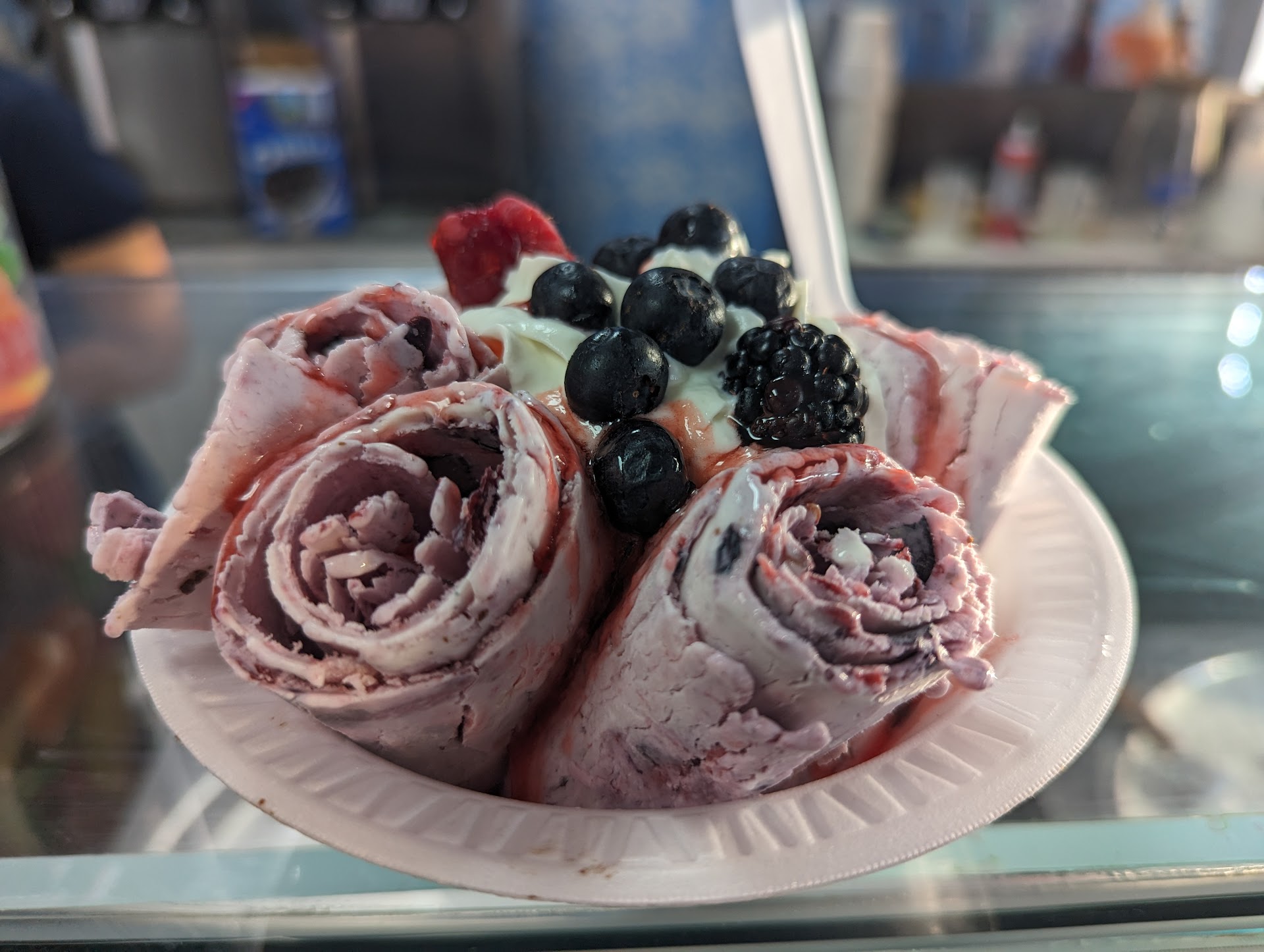 Overall a horrible experience. The place was disgusting and looked like it hasnât been cleaned in years. There was ice cream openly sitting out without being refrigerated. Then, to add onto the horrendous experience, I ordered mango ice cream rolls which contains no gluten, because I have a gluten allergy. He started making them on a dirty surface, that looked like he hadnât cleaned for days. The surface had other peoples previous left over orders on it, to me one looked like strawberry and one looked like chocolate, which if my boyfriend hadnât said anything, they couldâve contained gluten and been mixed into my order. Also I forgot to add, that the ice cream mixture was just openly sitting out on the counter, it wasnât being refrigerated. Overall, I found the place and experience to be disgusting and not worth the time or money just to throw the food...