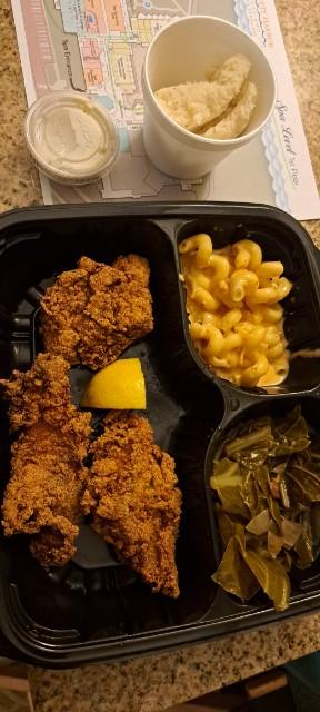 Ā Ā Ā Read moreI arrived around 6:35 on a Sunday evening. I ordered meatloaf that was supposed to come with a brown gravy. At 7:40 p.m. the waiter comes out and tells me that they are out of the brown gravy. I told him just bring some ketchup or some barbecue sauce. Really it took you an hour to tell me this. I ordered a picture of sangria it was completely filled with ice so probably I got a half a picture for 32 dollars. Complete rip off there. I know the place was noted for their fried Chicken so I ordered a thigh and a leg. The price for those two pieces, what appeared to be pigeon being served to me. Was $10. Another rip off. I think my pinky finger on my left hand has more meat on it than that bony chicken leg. As you can see in the picture the meatloaf was one piece and a half, maybe 3 to 4 teaspoons of mashed potatoes and an adequate amount of green beans, all for a measly price of $22. Another rip off. I won't be going back,I've heard good things about this restaurant, but I didn't see one. Luckily I had a $30 coupon that I bought off a Clipp. At the end of two meatloaf dinners and a pitcher of sangria it came to $65. My tip to the waiter was find another place to work, because this place might not be around too long after I post my review. Friend of mine ordered the collard greens they were decent and very edible with a good flavor. That's the only good thing I have to say about the place. The sangria was a nice flavorful drink, not much fruit in it but it did have a...