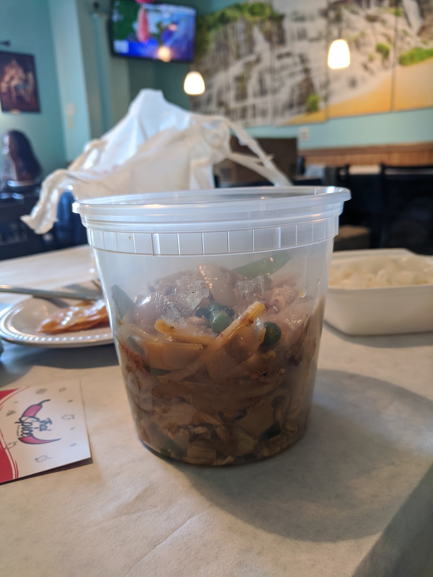 Read moreNot going to lie, was a little nervous when we walked in because there was kind of a strange smell and it was empty. Figured out it was probably the candle at the front mixed with thai food smell. We went for lunch which came with a very small salad (I didn't eat but everyone else thought it was good), soup which was delicious, and a small spring roll. There were a lot of us there and we all ordered a range of things. Everyone was very happy with their food. Our meal ended with these awesome sugar covered tortilla chips.