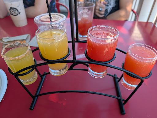 I went with the mimosa flight and picked mango, peach, pomegranate, and strawberry. They were tasty enough, but none of the flavors were particularly bold—pomegranate was the standout. The mango and pomegranate had Tajin on the rim, which I loved.