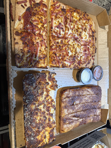 In terms of food, not much to say. I got an original large pepperoni pizza with bread sticks and the pizza was very thin crust for being regular and the bread sticks were very airy, so not much actual bread to them. The pizza dough was pretty airy as well so the pizza was thin and the crust was hollow with not much...