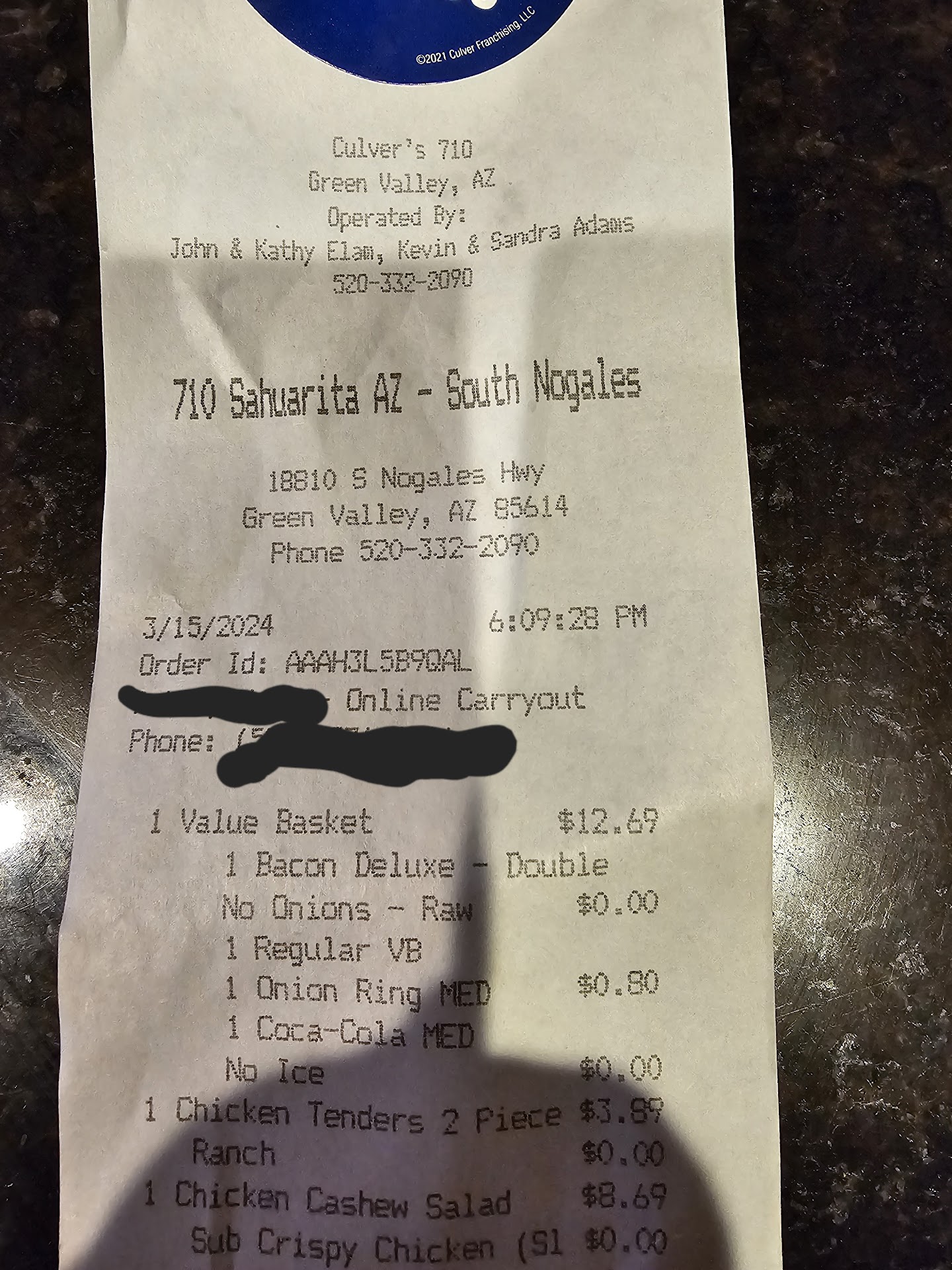 I’m not one for fast food and as gross as most places have become over the past several decades, it always amazes me how low people’s standards are these days for food quality and how little their taste buds react to bad food now. I will say… at least Culver’s “looks” like they use REAL ground beef, so I will give them that… but looking at the burger I was reminded of the commercial about Wendy’s …..decades ago… “Where’s the beef?” 😂 I found this place WAY overpriced for the food we rec’d. Nobody even ate the fries… they were terribly undercooked and gooey/gushy….. It was seriously rare for me to even eat out…. But you can bet it will be a very long time before I eat fast food again! I can buy fresh, grass fed/grass finished beef from a local farmer as well as organic veggies and fruits for a good price, and cook up a healthy, well balanced feast at home. Doesn’t take long, and it’s well...