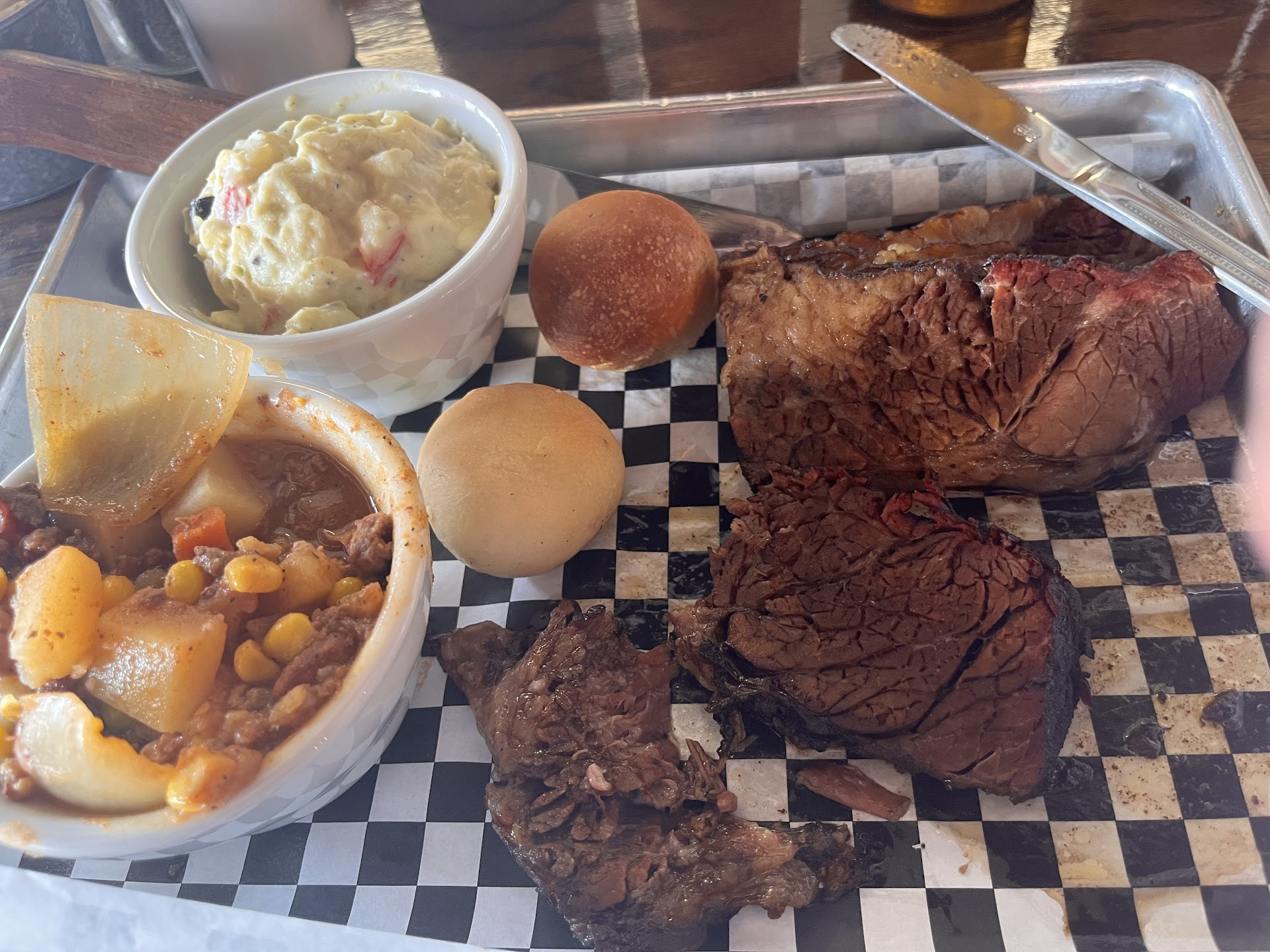 Read moreWhen BBQ is sauce only... Mixed experience at best. Bottom Line: No pride in ownership. Ordered a hamburger (self) and pulled pork sandwich with a cole slaw side. Good: Server was friendly and attentive - gets an A for job. Cook: The hamburger was cooked as ordered. So a thumb up on that one. Now the issues: --The BBQ sauces at the tables have expiration dates on them, which I am happy to report as a positive. The down side is that 3 of the 4 sauces had expired dates. --The requested lime for the drink was either cut from a old lime or cut at least two days ago as it was shriveled and turning brown. (This comes from someone who put themself through 4 years of college tending bar.) --The cole slaw is mostly a cumin flavored cabbage. The cabbage was going south, making the side dish inedible, but the overwhelming industrial grade cumin flavor is strange. If a quality cumin would have been used, then maybe I could accept the weird flavor. But add cabbage which is starting to rot and it's just bad. --When the meal was presented, the first thing my table mate did was use a paper towel (Provided as napkins at the table on a paper towel stand.) to wipe the excess oil from the top of the sandwich roll. --The biggest disappointment is that the meat was not smoked. So here the BBQ is when one adds a sauce to the meat. Does this mean that I could have gotten a TexMex plate by adding a bit of cole slaw and ketchup to a bit of pulled pork or beef? Anyway.. you get a feel for the poor quality of food served. Hamburger wise, stick to Culver's for a better burger at a lower cost as the burger had no BBQ flavor and was just cooked on a flat-top. Overall - Tried out the new BBQ place in town and will not...
