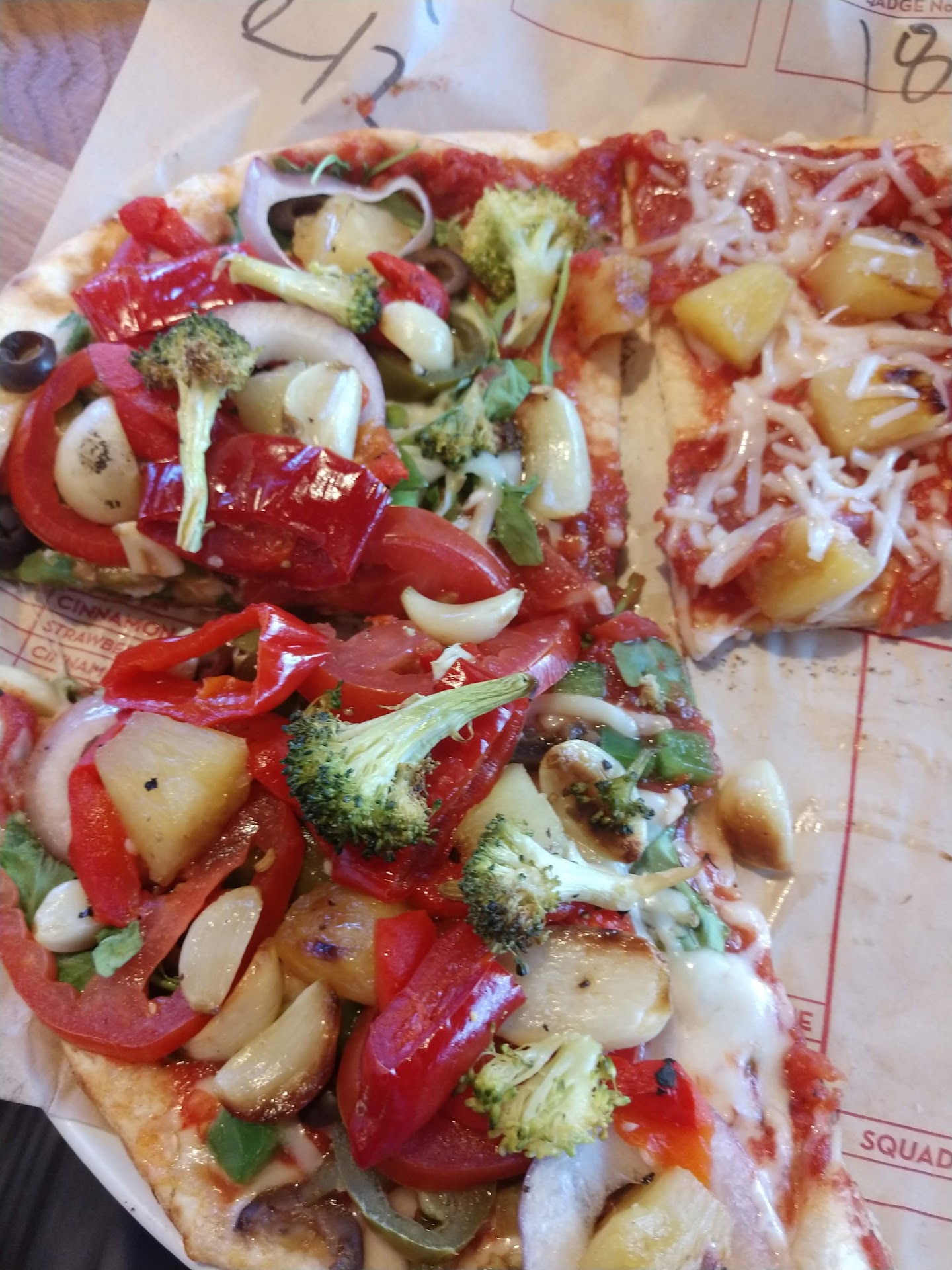 Read moreFood is good, pizza is a bit small. My issue was the ordering process. Basically you stand at the counter and tell them what you want which should go quickly since the stuff is on the menu. The problem is if you have someone in front of you that is doing a custom pizza. You are stuck waiting, 15 min tonight for me as this woman was slowly telling the pizza maker what she wanted on the pizza. Mean while people behind her who simply want to order something off the menu are stuck waiting. I asked them if they could just take my order but the girl behind the register was saying you cant cut in line. I was next in line so its not cutting I tell her. They need two people taking orders. One for these custom orders and one for regular orders. I tried to explain this but they just looked at me like they either didn't care or...
