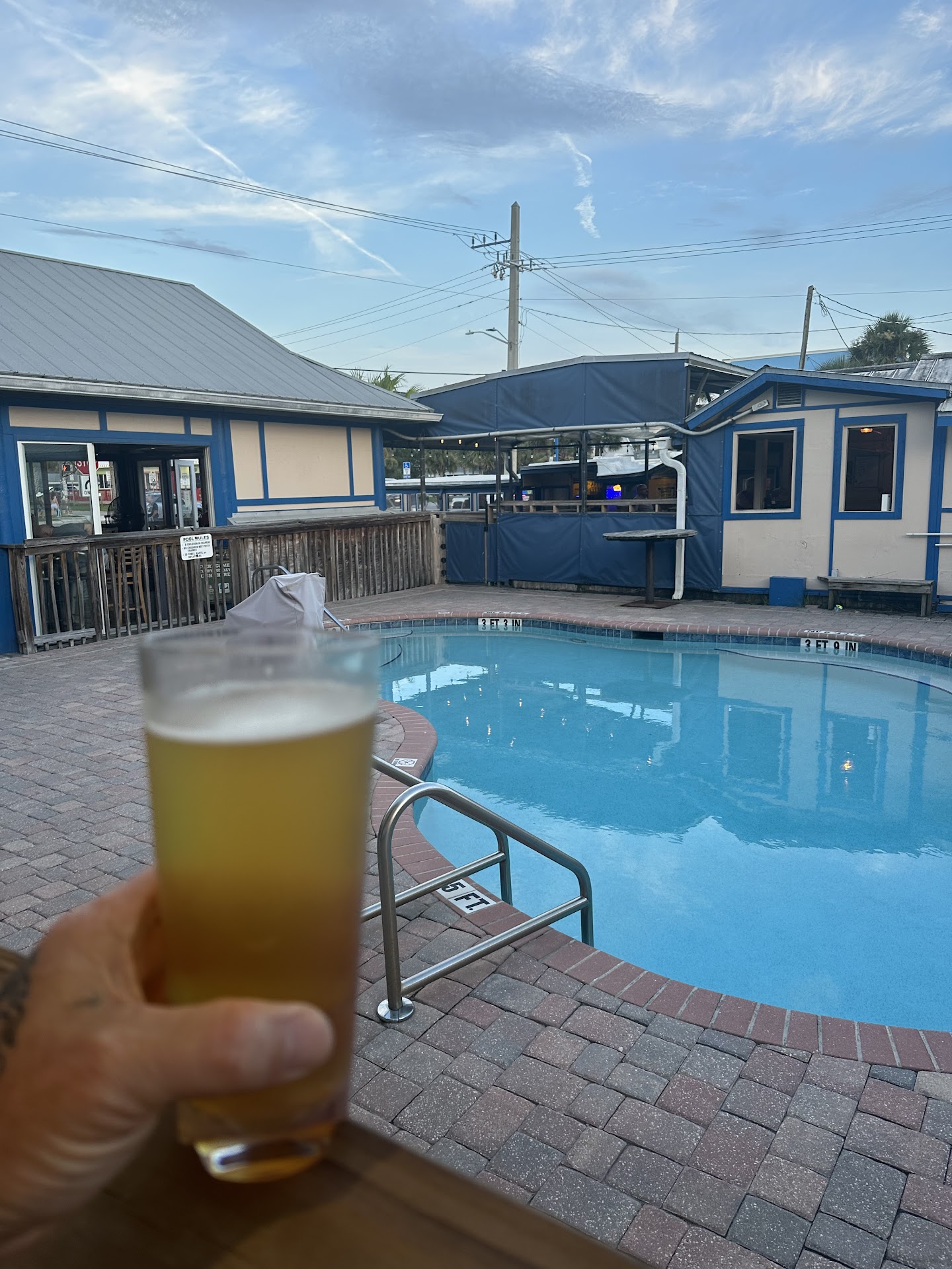 I like popping in here for lunch. Best to get there for early lunch or late lunch. Quite a few locals hang out at the open bar and start their evening early. I have been here for lunch several times and have not had a bad meal yet. The parking is definitely a problem though. Not enough spots so if you can get one close you are lucky. They have an outdoor seating area. Some of the picnic tables are pretty sketch and need repair or replacement (easy fix). Being walking distance from the beach (probably 200 yards), the elements take their toll on everything in the area. They have a game room (enclosed) with pool tables and a bar. They also have a pool which is for patron use and it's not readily visible to sidewalk traffic. The pool area looks very well kept. No food or drinks allowed in the pool area. They are also opening up a Jack's Brewery right next door. It's not a bar, but they will have a small tasting section. Jack's will be brewing his own product soon!