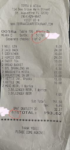 May 8 2025: See my Google St Augustine Local Guide Reviews - the following St Augustine Businesses have published record customer personal safety issues with the current personnel and management team and not recommended: Aqua Terra, Shanghai Nobbys, British Pub on Anastasia Blvd, Cafe Eleven, Pierre Pub. Cafe Eleven, Aqua Terra, No Name, Pierres Pub management are advised to review interior snd exterior security camera video for Google Published Public cited documented paying customers experiencing personal security threats from the actual employees who are part of the Management and Enployee team of these businesses.