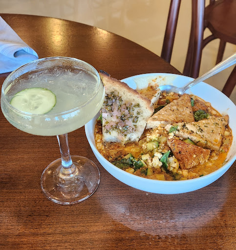 We started with the Breads & Spreads, which came with colorful crudité and their housemade gluten-free focaccia — so light, fresh, and perfect for dipping. The Summer Melon + Labneh Plate was a standout: sweet cured melon paired with heirloom tomato “salsa,” spiced chickpeas, and a creamy tangy labneh that tied it all together beautifully.