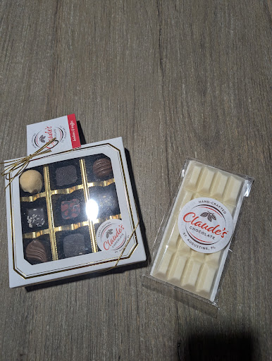 Read moreThe chocolates are amazing, and I highly suggest the Shiny Mango or possibly the Dark Raspberry. The details and tastes of the chocolate were amazingly intricate. By far the best chocolate in St. Augustine. Although the person behind the counter (Who I assume was Claude) was a bit rude, but that didn't bother me. I could tell she was a bit stressed because she was working by herself. She may have just been having a bad day, which I understand. So I wouldn't take any part of my rating away for that. Again, amazing chocolates as well as Popsicles. Oh, don't even get me started on those. They're so good! I had gone to Claude's and Whetstone. Whetstone can't even compare to how amazing Claude's...
