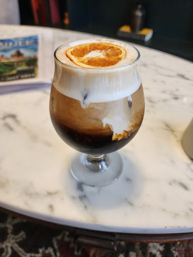 I absolutely love the decor here. The ambiance and artwork evoke a slightly older era with a military and pioneering flair—some might even call it legendary. The drink I ordered, "The Genovar," perfectly fit the theme. To fully appreciate this drink, I recommend asking for it in a "for here" glass rather than a to-go cup; it made all the difference for me.