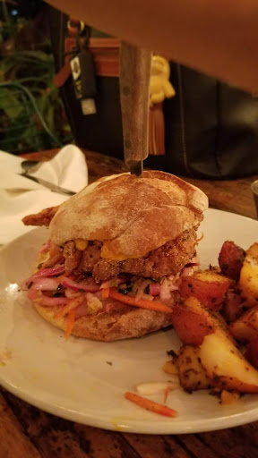 Wednesday, April 13, 2022, we decided to give The Floridian a try after a recommendation by a local. I must say I was somewhat disappointed! The hostess seated us outside on a wonderful evening and asked what we'd like to drink. I inquired about draft beers and was informed that our server would have a list of available brews. After about a 10 minute wait, our server greeted us. She read off the list of draft beers. Not a long list by any means. I chose 1 to sample. She came back and apologized that my chosen brew had just 'kicked'. I asked for a different one. Again she came back and said that it was unavailable and informed me of another from the list that was not on tap. This was approximately 1/3 of their available draft brews. As the remaining brews either didn't interest me or were humdrum selections (Yuengling, Bud Light, etc) I opted for water while my fiance had a Bud Light. Next we ordered an appetizer of "chips & dips". Incredibly we were once again informed that they were unavailable! "Chips & dips"? To their credit, they brought us a complimentary basket of their great bread with the 2 dips that usually accompany the chips; Lemon-garlic Chickpea hummus and Black Bean-Poblano dip served with crudite veggies. Both dips were very nice! My fiance ordered the "SOUTH-EAST FRIED CHICKEN SANDWICH" ($16.75) and added their pimento cheese for it (+$3). For her side she chose the herb roasted new potatoes. The chicken was crispy outside & moist inside. Perfect! The potatoes were also very good. I wish I could stop there but, alas, I wanted something to eat as well. My challenge is that I've been undergoing major restorative dental work & am somewhat limited to foods on the softer side. Sadly, no crusty breads or steaks for me. I inquired about the soup du jour ($4.50 CUP/$7.00 BOWL) and the server described an interesting sounding tomato based soup. I also chose the "THE CHEESE BOARD ($16.50) Described as "A selection of Sweetgrass Dairy (Thomasville, GA) cheeses served alongside pan pugliese bread, seasonal fruit, apple butter, candied pecans, and FL honey" For me, here is where the last remaining wheels fell off the wagon. The server's description of the soup and what I was served were far apart. The soup contained the same crudite veggies that accompanied the bread we were served. Mostly raw & virtually uncooked & so inedible for me. It was also lacking flavor to my palate. I had asked what cheeses I could expect on the cheese board and was told "gouda, goat cheese and feta". Uh, not hardly! There was brie, which I would have nixed had I been informed of that. The goat cheese was very nice. There was also roquefort or blue, also nice and another cheese that I was unable to identify but pleasant. As for the promised accompaniments the 'seasonal fruit were 3 or 4 small & wafer thin slices of apple. The 'apple butter' was nothing like apple butter that I'm familiar with as a Pennsylvanian Dutchman. Rather it was more of a seasoned apple syrup and FL honey was nowhere to be found. The candied pecans were fine. Had we had a better experience, almost $70 for a light dinner, would have been acceptable but in this case, although we come to St. Augustine frequently, I doubt...
