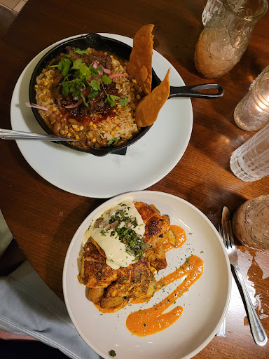 Read moreWhile visiting the area this afternoon my wife received a recommendation for this restaurant from a shop worker nearby. Upon presenting to the hostess desk, we were told it was a 10-15 minute wait for non reservations which was fine with us. We were not called until 35 minutes later. I understand that things arise and if we had been acknowledged and informed of the long wait it would have been more hospitable. We were eventually escorted to our seat and greeted by a waiter who was nice. He brought us our water and ice tea and took our orders since we had a chance to decide what to order before being seated. Our main courses ("N grits") arrived and were a departure from the way the menu had described them to be (flounder and grits, and the shrimp and grits for myself). The grits were a plank of grits like how they get when they dry out in a pot; closer to fried polenta. I mistook it for a piece of cornbread at first. The shrimp was cooked well, but it included pickled vegetables similar to pico de gallo which I wasn't fond of personality, but it wasn't bad. It came with 5 average sized shrimp in a remoulade-colored sauce. My wife did enjoy her flounder but maintained that it was not quite what she was expecting either.