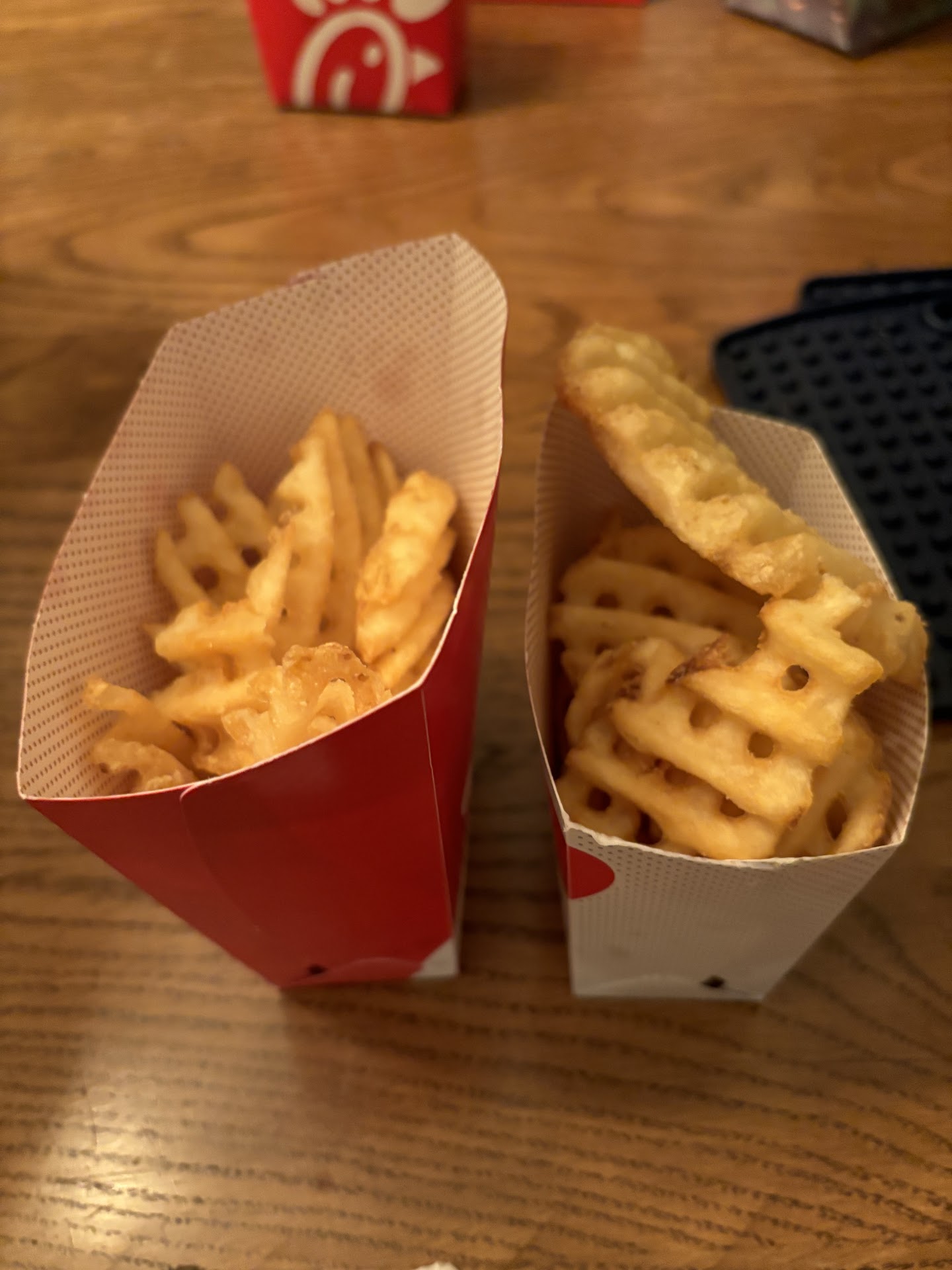 Read moreI'm much more patient than I was in my younger years and since I have only been to a CFA that has been operating for YEARS, I don't know what hiccups they had with opening. As a realist, I'm sure teens doing super fast orders with no mistakes did not happen on opening day for any of them. I wouldn't, nor my sons, have clocked in day 1 and been as good as we are all accustomed to. I'm giving them time and grace because we(this community) BOMBARDED that place DAILY since the moment the door was unlocked for the first customer. I've been a business owner and I know how hard it is to train different people with different abilities. My suggestion, if you don't want to go through the toddler phase with them, go elsewhere until they grow up some. I'll keep going because, in this economy, I'm glad to see places hiring and bringing businesses to our community. I wonder how many of us, in the reviews, could go clock in there and work like the older stores. I'll be the first to tell you, you'll get your correct order but it's gonna be slow because I have no idea what I would be doing. I would get faster with time but it would take time. I guess I'm just a...