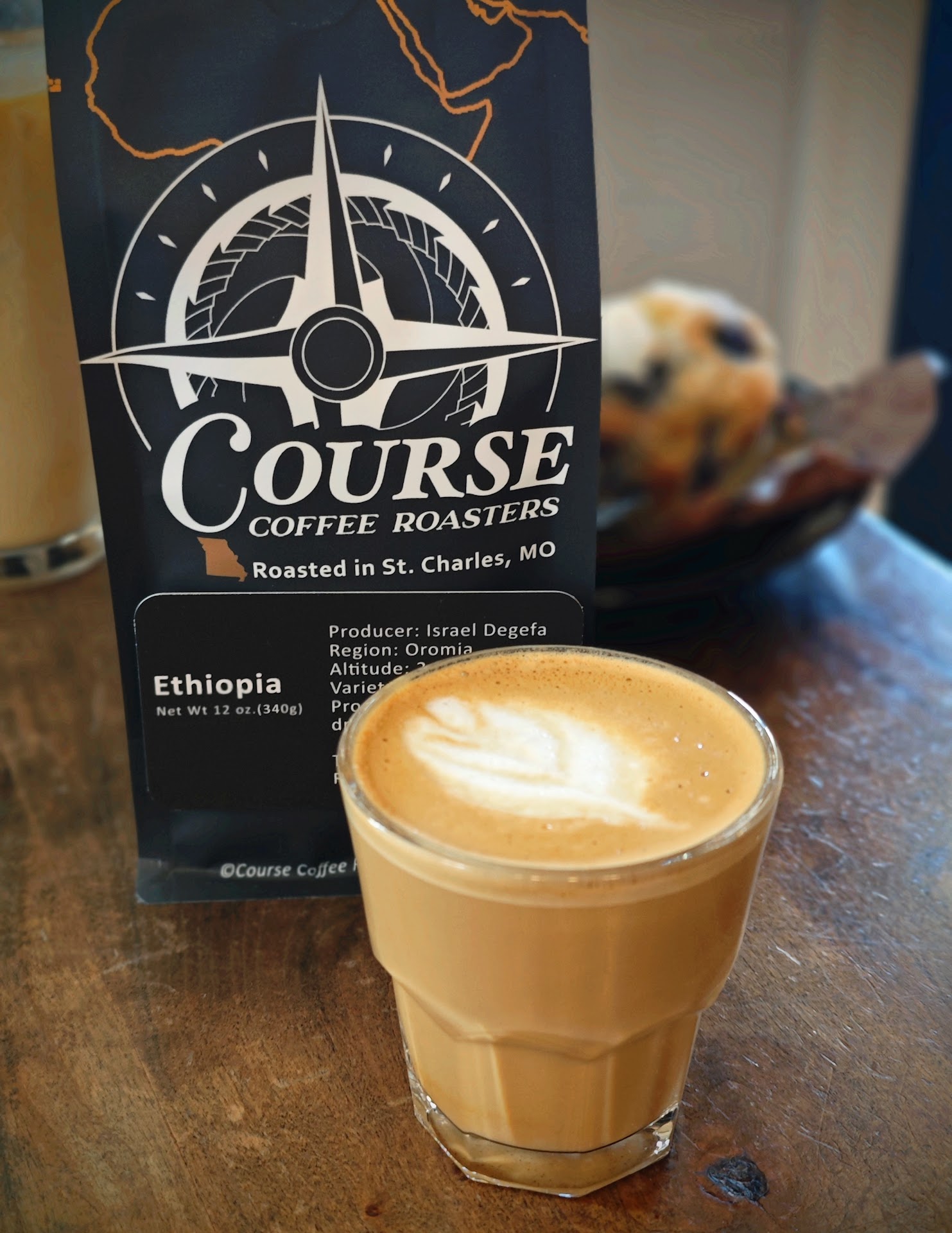 Read moreCourse has a vibe unmatched by any other cafe / coffee roaster we've visited recently. It's clear that the owner Brandon has put every ounce of passion and craftsmanship he has into his coffee and his team. The staff here can clearly call this place home. We've been to 24 different cafes across 12 major cities in 2023 alone -- Course easily lands in the top 5. All this time, Course has been in our very own backyard, located in historic St. Charles Missouri. The coffee was excellent, the decor was interesting and relaxing. We felt at home, comfortable, yet inspired to express ourselves. They have a good selection of origins too. If you're looking for something special to brew at home, they've got it fresh roasted. Given the name itself, Course's desire to explore the world of coffee is clear. Support local business, give...