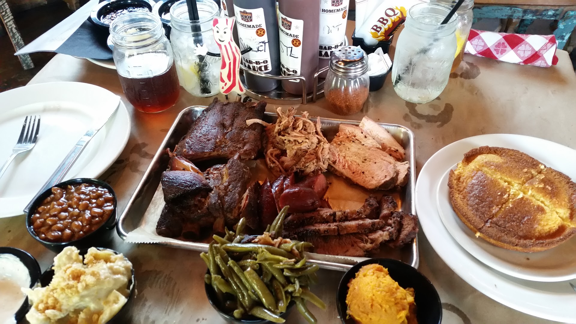 This was my 1st time at Hendricks, but it definitely will not be my last!! Being that I worked in the Food Service industry as a Chef & Kitchen Mgr. at numerous Restaurants, Hotels, & a Country Club for many yrs. I am a person who likes exploring new places to eat & I must admit I am a lil' picky & have high standards !! The server we had was exceptional!! very friendly & accommodated us superbly. After looking over the menu thoroughly we decided to order "The Shebang" which we thought was the best deal for the money. We ordered Baked Beans, Mac & Cheese, Sweet Potato Casserole & French Fries for our 4 sides & we also ordered Creamed Spinach & Greens & Fried Potatoes(Hey, we were hungry!!š) All of our meats were tender & had very good flavor(especially the Brisket). The Sausage had a lil' kick to it, but it was good & the Turkey was delicious!!š¤¤. As for the sides, I read several reviews commenting that they were skimpy?? I felt the sides were reasonable, there was enough of each 1 for each person to get a spoon fullš. The Mac & Cheese was a lil' different than what I was expecting as they used large, thick noodles. The cheese sauce was very thick(almost pasty), but the overall flavor was very good. The Creamed Spinach was very good & had a very fresh taste to them. The Sweet Potato Casserole was awesome!! very light, not overly sweet or filling( definitely worth gettingš). The Baked Beans were delicious!!, not overly sweet & they had a delicious mild maple flavor to them(I ordered 2 side orders To-Go). The Fried Potatoes were good & had a very good fresh potato flavor to them, but I thought the French Fries were better, they were crunchy with their delicious batter & they held their temp excellently!!š(they were worth ordering a order to take home). The atmosphere was very historic & eclectic. Now, after all that they even had dessert which I plan on coming back & trying(Pecan Pie, Banana Pudding, Ice Cream, Banana Cake). Now, the things that I thought could've been better: #1. The size of the fountain drinks, although U get complimentary refills 3 or 4 good swallows & U were ready for another refill. #2. The Mac & Cheese could've been more creamy rather than so thick & pasty. #3. We had to deal with gnats or mosquitoes flying around our table & food which I assumed was from the flooding of the river being so close, but they need to do something about this problem, because it was very annoying & a lil' unappetizing!!. #4. The BBQ Sauces were not that impressive overall. They were very liquidy & had a vinegar twang to most of them. Our server said that the "House" BBQ Sauce was the hottest, but it wasn't. I was surprised that there was no Sweet & Smoky, there was a Sweet BBQ Sauce, but it could've been much better!!! The sauce is supposed to compliment the meat & I don't think any of the sauces did that, the meat was very good dry with no sauce... I read a few reviews saying the prices were high?? I would disagree with that!!! U get what U pay for! Most items are prepared In House from scratch & the portions are very reasonable. I hope that Hendricks is around for awhile & maybe even considers expanding out to other areas(especially with all of the vacant buildings Ex: Kmart, Sports Authority, Walmart,...