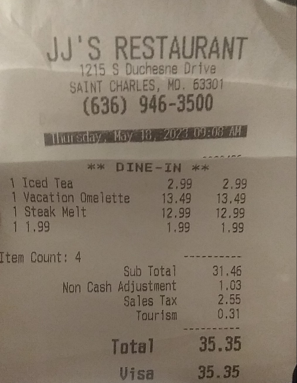 I ordered the dinner omelette and when I asked about the meat, I asked about the bacon, in particular, to see if it was served on the side and the quality of it. I was told it was thin slices, it was a whole mess of crumbled bacon (see picture) with way more cheese than is necessary for an omelette. That was taken off before it was edible (for me).