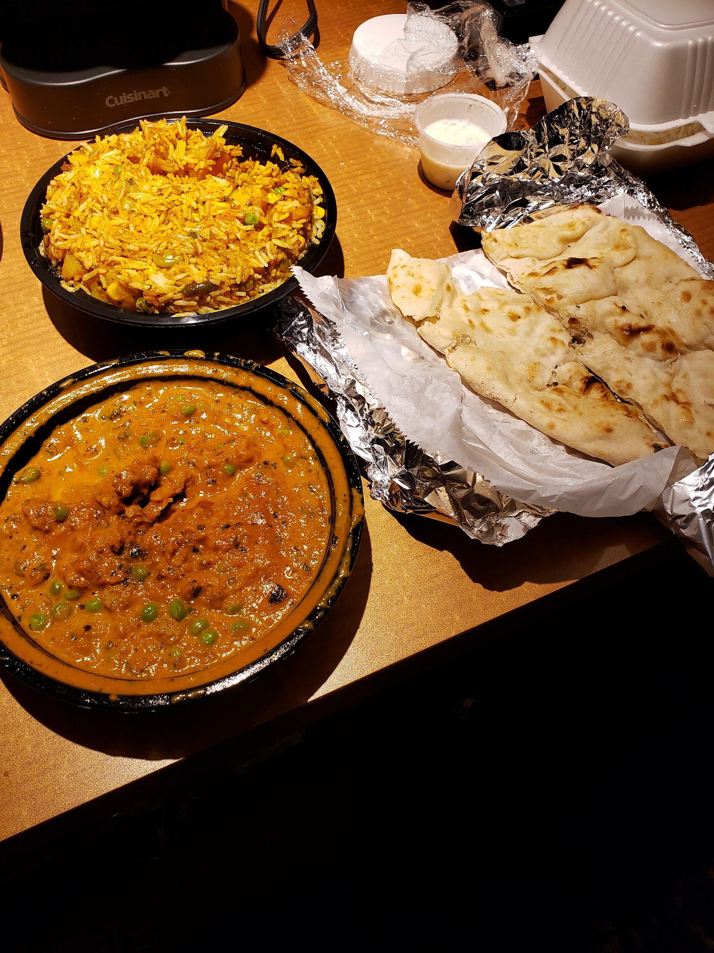 Read moreUpon arrival I was greeted by a friendly hostess. Seating was limited and the atmosphere was takeaway focused. You could tell the restaurant was family ran, as there was a home altar with memorial photos at the entry way and the smell of incense was present, and the food storage area was visible where you could see bottles of water and bags of jasmine rice that were on the ground, so instead of dining in, I respected the space and asked for a menu for takeaway. I ordered a dal tadka, while I normally prefer dal makhani, the garam masala forward flavor won me over, I also ordered chicken 65, chicken vindaloo, lamb tika masala, and a variety of naan. The 65 was fried nicely and the seasoning and flavor was about average. The vindaloo was underwhelming in spice and seasoning, very thin, and tasted more like tomato soup. The tika was average, a bit creamy and light, with a coriander and turmeric forward flavor. The naan was very lightly toasted. They also provided jasmine rice for each entree, which was lightly seasoned. I had requested dishes as spicy as possible, and I was unable to detect any heat, just the flavor of heat, however to note I am a chili-head and understand this is relative for some folks, if you're looking for something spicy like I usually am, you won't be blown away with the spice game presented. Overall the experience was average for an Indian inspired cuisine takeaway experience. The Dal was the best of their offerings tasted, however I did have to ask if they had it, as it wasn't on the menu, which was surprising to see for such a...