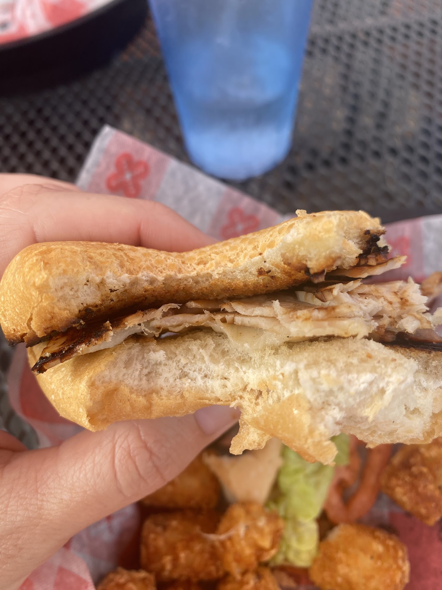 We ate outside on the patio. I had the roast beef French dip and fries. It was really good. My partner had the fried chicken wrap and fries and said it was really good. My dinner was $10, not sure of the price for the wrap. You go places nowadays and everything is overpriced, so we were very happy with their prices and the taste and quality of the food, and, the food arrived quickly. Very fast service! We both only ate half of our meals, so we had lunch the next day. I wish I had thought to take pictures of our food!