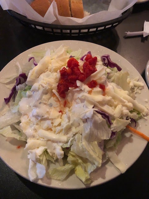 Choose toasted ravioli with half order of cheese garlic bread again ( it's just so delicious!) Ravioli was cooked perfectly. And delicious along with the meat sauce to dip it in. Garlic cheese bread was toasted just right and cheese melted with just a touch of golden brown around edges. The garlic flavor gently layered in with the bread and cheese was making me wish I'd ordered a full order instead of the half or as they refer to it as a small order.