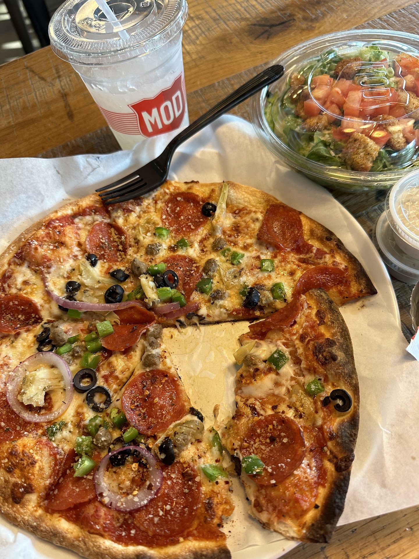 Ā Ā Ā Read moreHereās the thing: if you visit a Mod Pizza restaurantāand if thereās a line insideā-then please just be patient. The employee work model when assembling pizzas seems to involve an effort to take the time to do it right and when applying toppings, they want to distribute toppings evenly and make your pizza or salad appear full. Iāve observed them working at several locations now, and that work model suits me just fine. Iād rather have a finished product done correctly than in a rushed, sloppy way like at competing restaurants who just bang out orders during a rush and then give you a terrible product. Delicious pizza š and patient staff, they pay attention to details and build it just like you like it! I ordered the Mod-size pizza with a side Caesar salad Deal (the discount is about $3 less than ordering these items separately). The Mod-size pizza and salad combination was $10.39 + $5.89 plus tax. Their Lemonade š is marvelous, too! Who could...
