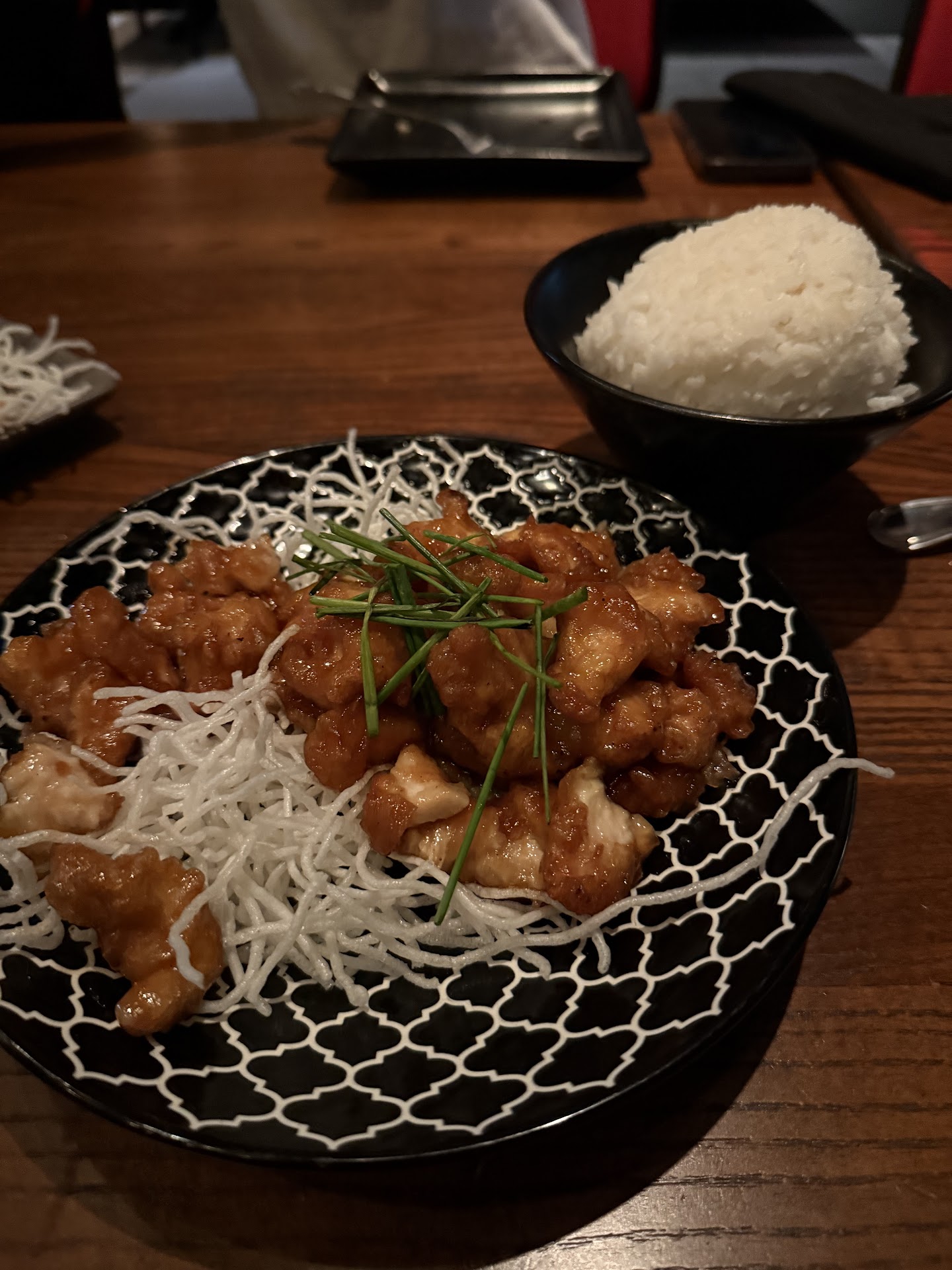 The new popcorn chicken appetizer looked as if it was the bottom of the bag with crumbs. $15.79 for this was unacceptable. The picture added says a thousand words. I expect to receive a good portion size not half filled with fried vermicelli noodles and dried up pepper rings. Same went with my entreé. Mostly half filled with fried noodles which I had to pick off.