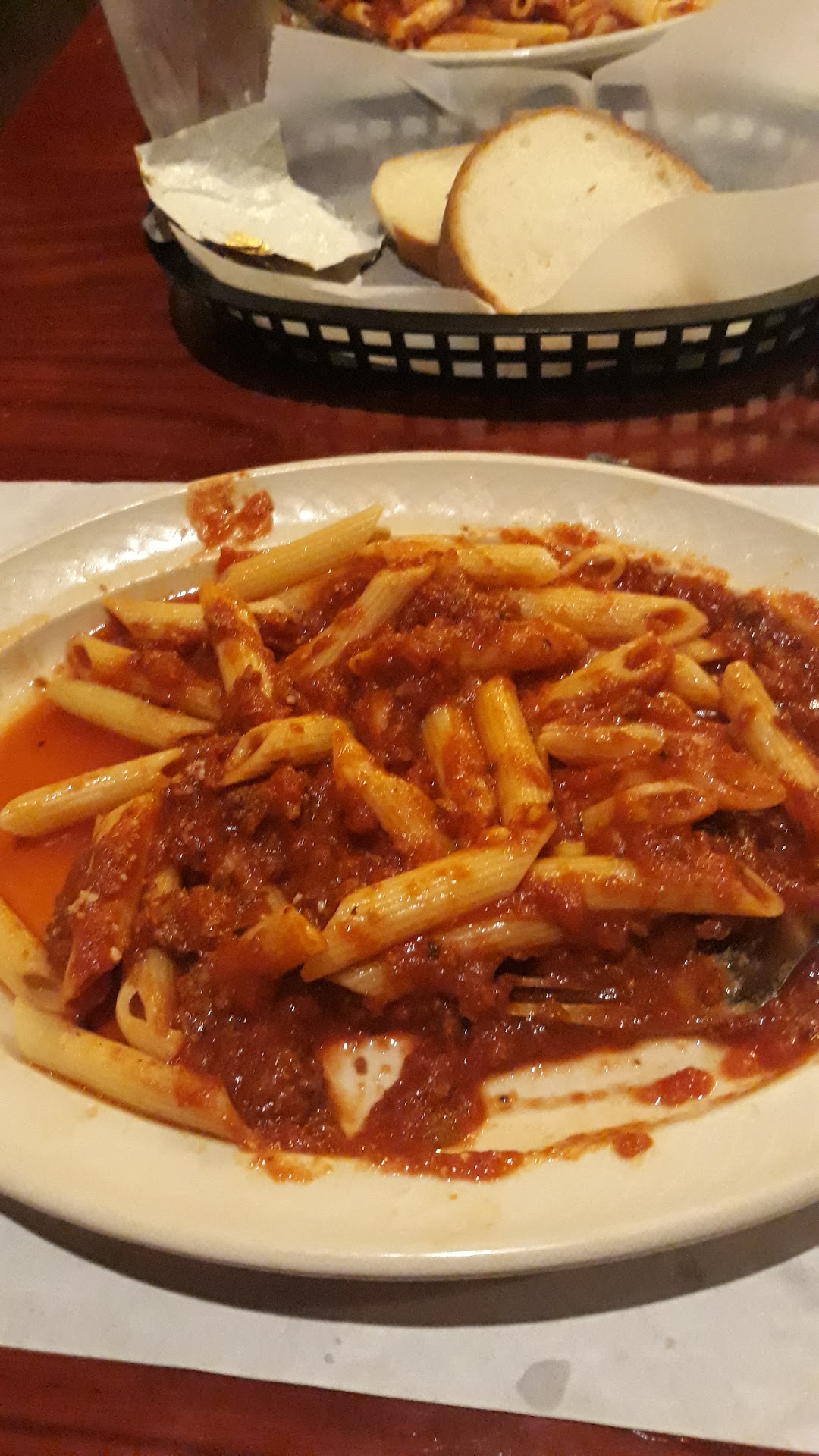 The service was OUTSTANDING!! Erica waited on us and she was beyond good. We had the stuffed mushrooms. They make them differently there, which they tell you on the menu and Erica warned me. We did not care for them, as they are deep fried almost to being burnt. BUT, that does not factor in this review, as I was told about and I decided to try them. What factors into this review, is my mom got a dinner salad, which it was not even close...it was iceberg lettuce, nothing else...literally nothing no tomatoes, no croutons, egg nothing. We were charged extra for the salad. Blue cheese dressing was described as sour cream base with blue cheese crumbles...there is no base it sour cream with blue cheese...it is not good. I had the french onion soup...that was Beyond excellent. I could have eaten a ton if that...and should have. We both ordered 2 Mostaccioli with meat sauce. (Here is where I let you know prices on their website do not match the present menu...understandably with the price rise today, also not part of the review...just a warning). The noodles were way over cooked, mushy. The sauce barely has meat in it...even though you pay more for meat sauce...and honestly, I am sure it is homemade, but it tasted exactly like Ragu. Absolutely no seasoning. BLAND.. Had 2 to go desserts. We wanted to leave becz it was so incredibly hot in there we were sweating. Pineapple cream cake and turtle cheesecake...both excellent and worth every penny. I had 1 glass of wine ordered like this "I would like a cheap blush" I was brought a glass of Sutter House...which was fine, fyi..6.00 a glass. The bill came to 69.24. (We drink water for dinner.) For what is basically what you can make at home, better. The bread was good but just bread...you pay extra for garlic bread. Now are you thinking " well you ate it"...no we did not. I took everything home to feed to my dogs and the squirrels in the backyard. We were starving when we got there and starving when we left. Went back to our Airbnb and ordered a pizza. I was so upset I forgot to tip Erica probably. So I drove back immediately and apologized and tipped her properly. She and the onion soup was the only bright spots. My suggestion if you are visiting St Charles go to Tony's. We are regular visitors (3 times a year) so we know the places but we always try to go somewhere new each time...this time...