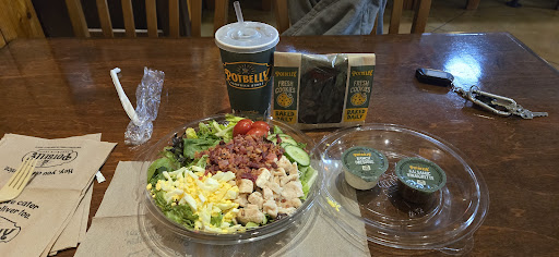Read moreMy wife and i decided to give it a shot. Wont make that mistake again. Food was OK. I'm not sure why we paid more for the big size because I just ended up with a bunch of extra bread. The poor girl up front was nice but was the only one working. She couldn't get part of our order out because she was the only one actually working. I ordered soup but was told 5 minutes. That was fine. My wife ordered a shake. We finished eating the rest of our food...5 minutes past, 10 minutes, you get the idea. There was no sign of her getting help. We could see two other employees doing inventory and dancing around in the back. The guy in charge seemed more concerned with flirting with his co worker. We asked for a refund because we were tired of waiting and this dude comes out of the back and asked if we just wanted the soup refunded. We told him the shake too and that was the only thing he said. He didn't look at us. He didn't apologize. My wife told him he should probably get the other poor girl some help. He disappeared and the other girl came back. The coke syrup was out. Despite the fact that when we walked in we were one of two orders it took forever. We weren't happy about the service but we were more put off by the fact that potbelly is probably paying the only one who was actually working the least.