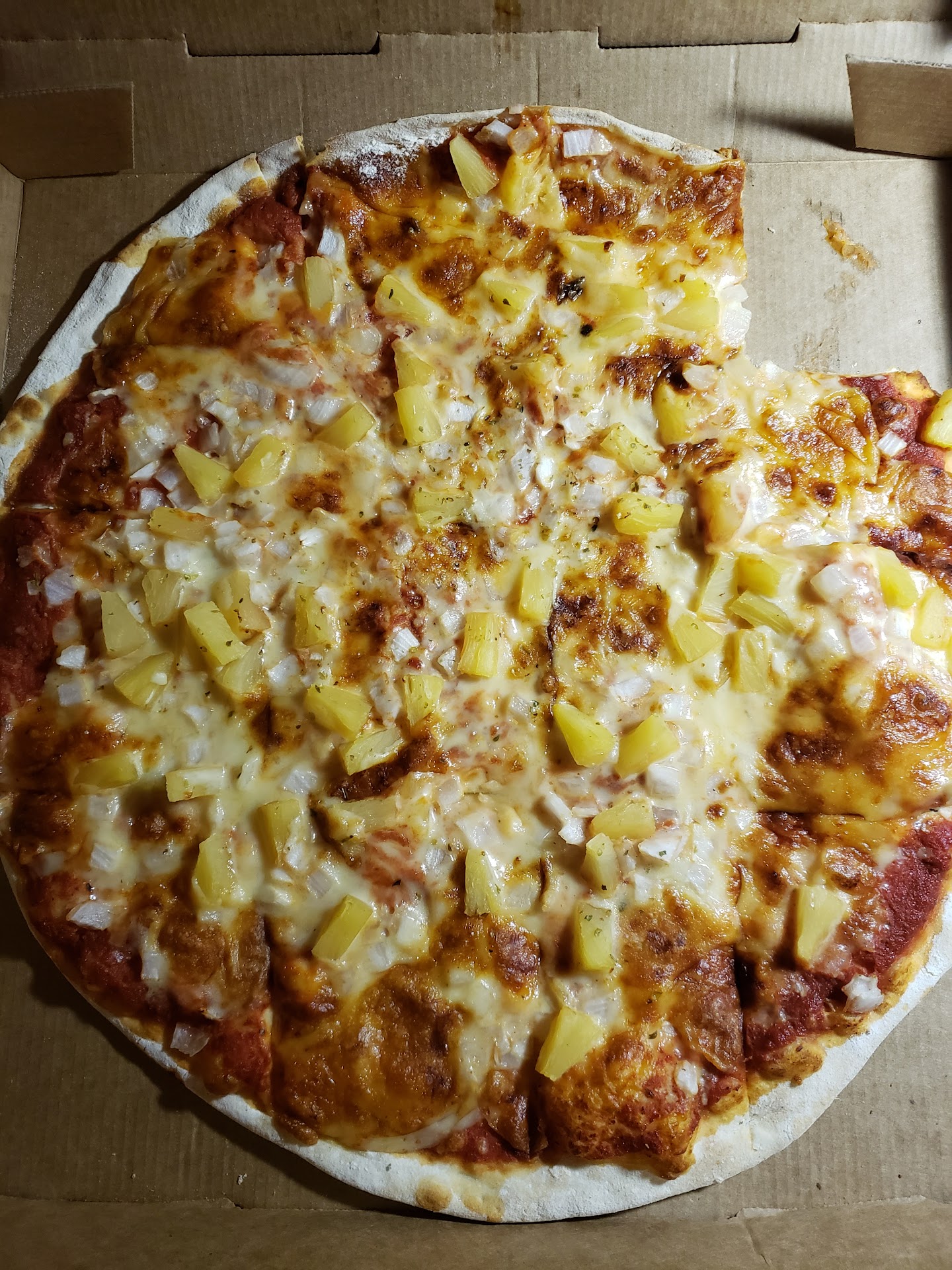 I would rate the Cheese Pizza a 4/10. There was too much cheese, even some of it pooled to one side of the pizza, hardening as it went over the edge of the crust. Cheese a 5/10. The crust is the worst. It was like eating a saltine cracker covered in flour with the firmness of a wet noodle. Crust is a 2/10. Again, though, the sauce was great! The sauce saved this pizza. It was very flavorful, had a little tang and some sweetness. The sauce gets an 8/10. I would not eat this pizza again.