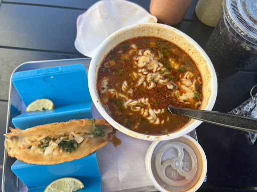I had been wanting to check out Taco Spot since I heard a birria ramen eatery had opened in the local area. Upon entry the restaurant was crowded, warm, and humid. Seating is available in dining room and outside. The staff were friendly. I ordered birria tacos, birria pizza, birria ramen, birria quesadilla, a bean and cheese burrito, and an agua fresca. I must admit the agua fresca was refreshing on such a hot and humid day. The Birria Tacos and consommé were rather simple in flavor, mostly salty and onion forward. The birria pizza which was essentially a layered quesabirria came with consommé, pickled jalepenos, and nacho cheese, the flavors were simple here as well, the nacho cheese was overly salty, akin to Rico’s canned nacho cheese sauce, the pickled jalapeños were the highlight when it came to the birria pizza. The birria quesadilla was essentially the same experience as the birria pizza, but on a smaller scale, with no jalapeño or nacho cheese. The birria ramen was a delightful contrast to the birria options, the broth, combined with the birria, ramen, and onions, really brought more complexity in the flavor that was presented, to note the onions on most of the birria dishes were raw, the fact that the ramen broth cooked the onions and released the locked in flavor, really helped elevate the birria ramen experience. The bean burrito had a solid amount of refried beans and was filled with cheese, nothing amazing about the beans or cheese flavor wise, however it will please someone looking for a simple bean and cheese burrito. Overall the experience was solid but the tastes and offerings could be improved, the prices were a little high for the offerings, the location was a bit overcrowded, I’d describe it as a middling birria experience. The only stand out and reason I’d recommend checking out Taco Spot is the...