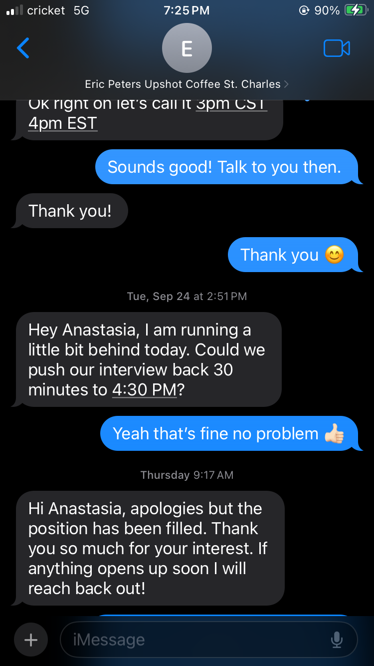 Read moreAs an employer for anyone seeking employment here let it be known that this employer has no respect with regard to applicants in college. I applied for a position here as a Barista with prior experience. Was given a phone interview with Eric while I was traveling in that state of GA during the Hurricane Helene, already experiencing no cell phone service or WiFi the Tuesday before the hurricane. I went out of my way to find make sure I could find a spot cell service to take this phone call interview. After setting up a date of an in person interview knowing I was in the mist of the hurricane scheduled a week after my return home on the 11th of October. My arrival home was to be this first Monday of October. We had issues people fighting for gas and rationing fuel on our drive home with powerlines and trees down and so forth… cause I was worried of being home for this interview as a 23 year old college student I need this job. Although it only pays $11 an hour which is part-time & full-time which is below minimum wage in the state of Missouri… employer contacted me today this morning telling me this positions are even filled, knowing I had an interview set up situation I said trying to get trying to get home. Very unprofessional. 👎🏻👎🏻 I also turned out other opportunities for this it was near my school and my...