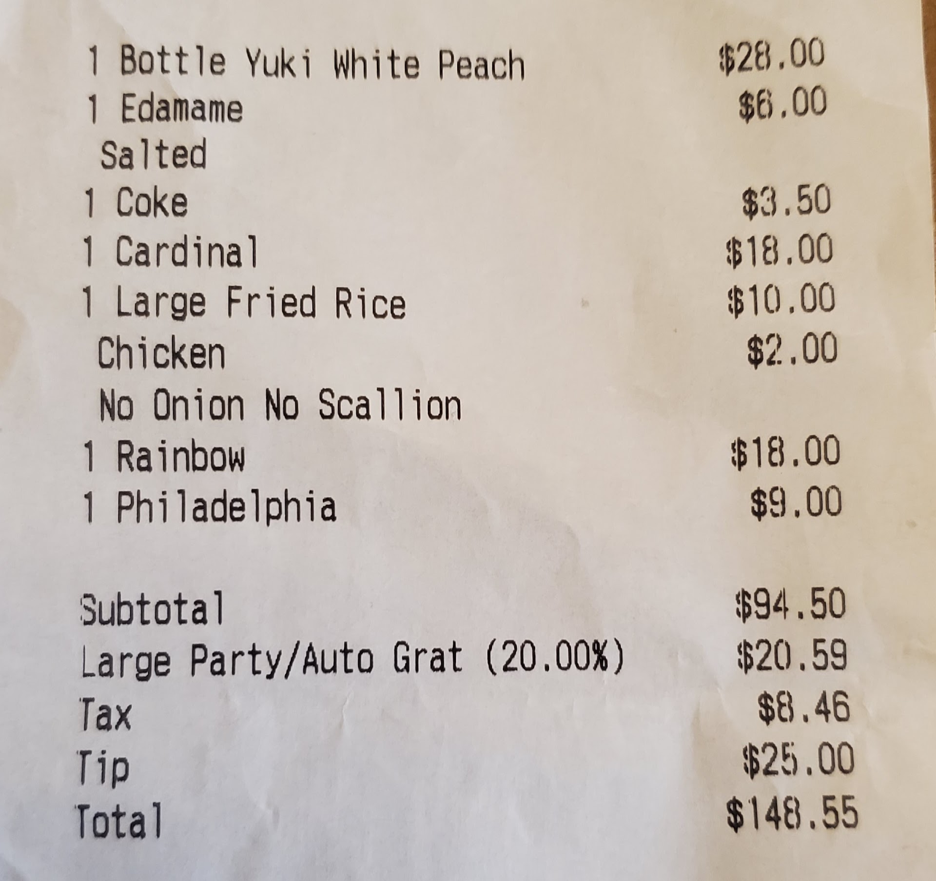 This is the first 3-star review I have ever left in my life...... and frankly, I’m being nice by giving 3 instead of 2……because I know how hard it is to start a business, let alone continue operations profitably and successfully over the course of time. Thus, I typically only share raving reviews, and keep the negative ones close to the chest instead of publicizing them as I'm doing here. This experience warranted management oversight, and I hope Wasabi management hears this feedback and takes it to heart. I'd love to give Wasabi another try...