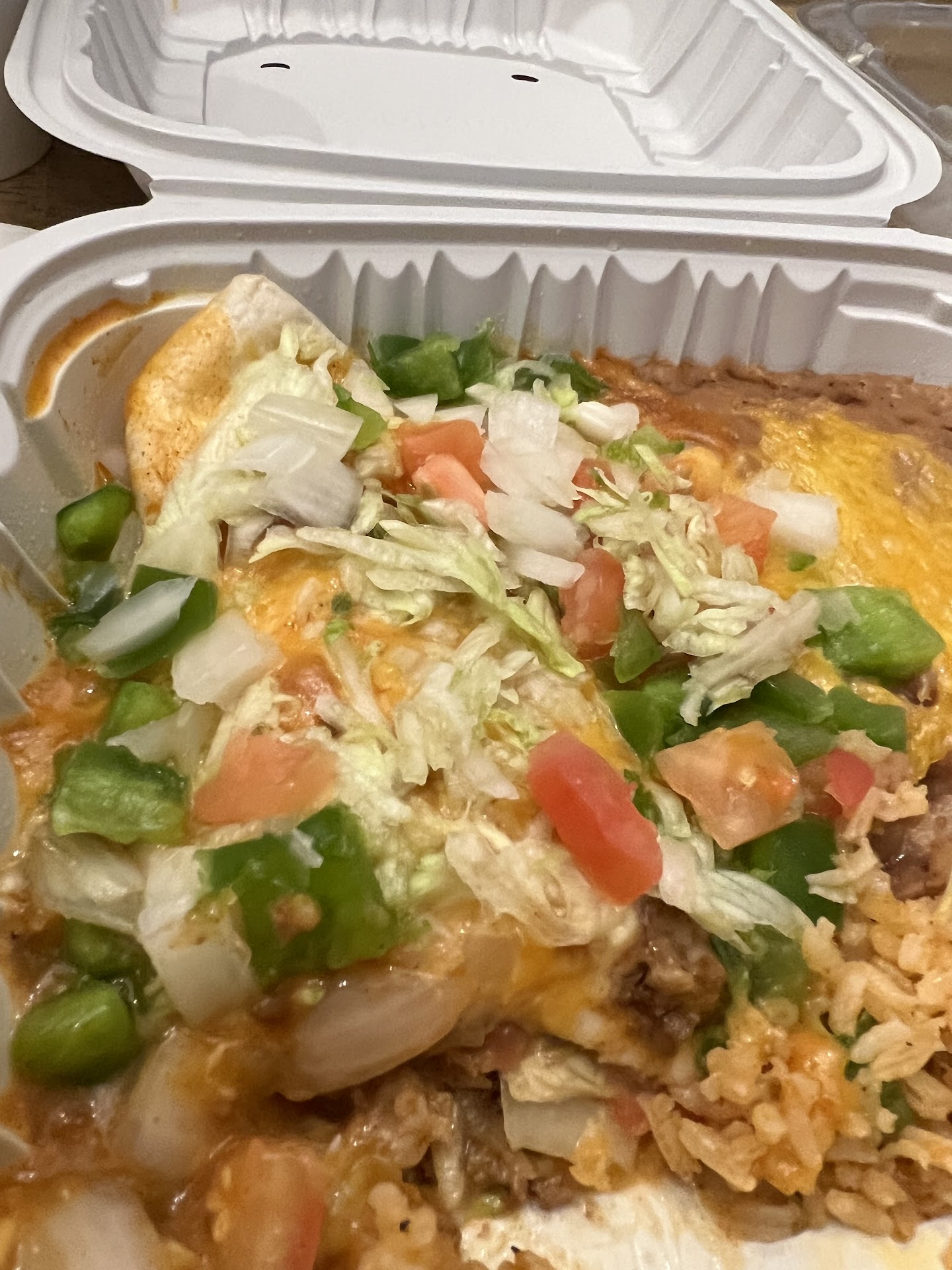 Come here tonight for the first time as a pickup order. I have wanted to come here in the past but itās always super crazy to get into the parking lot. I ordered online, the order was ready 10 minutes past the pickup estimate but they were slammed. I got home and realized they forgot a portion of one of the meals (mine) lol so I went back up there. They were even crazier busy but I got my remake within 5 minutes. I canāt speak for my family because they were all done eating by time I got back home but I ordered the pick three, chicken chimichanga, beef puffy taco, bean and beef wet burrito Mexican rice and beans. It definitely isnāt authentic Mexican but it was really delicious actually. I was surprised the puffy taco and chicken chimichanga was so delicious even though it was kind of cold by time I got to eat it. The wet burrito was also really good and the beans come with yellow cheese fyi but still very good. The chicken chimichanga is only about 2.5ā long and an inch thick, they are delicious but very small so keep that in mind when ordering. Okay so one thing I loved about this place was how they package the food, they put the items in their own containers to prevent them from getting mushy and mixed together, I also love that the cups and all the containers were paper and plastic products so I can recycle them, that to me is a WIN! One thing I didnāt like was the way the parking lot is laid out, itās almost impossible to park on the other side because the drive through, if anything this has prevented me from coming here in the past. Now that I have experienced it I will definitely come back to support this business and even though they forgot a portion of my meal Iām still going to give 5 stars based on service and...