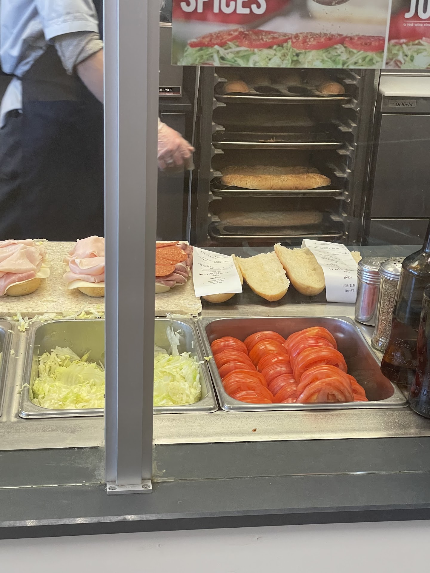 Read moreMy experience was a routine stop to get two sandwiches for dinner. One for me one for my girlfriend. I placed my order one club on rosemary parm and one original Italian on rosemary parm both giant. They start on her club they ask me if I want it Mike's way,she does plus add pickles and mustard. The clerk double check's if mayo is to go on the sun as well. I call her and double check yes she wants it as well. Then started on my sandwich. She asked would I like it Mike's way. I said no I would like lettuce pickles onions banana peppers vinegar and oil pepper and oregano. Got our sandwiches and went home. I opened up later that night they switched the toppings. My sandwich was loaded with mayo!! I hate mayo 🤮. I'm a Miracle whip guy if I'm eating turkey,but not on my Original Italian. I spent the next 15 minutes wiping the meat off and rinsing the vegetables off. I need these stores to quit pushing this Mike's way. Damn near threw my sandwich away. This might be my last Jersey Mike's go...