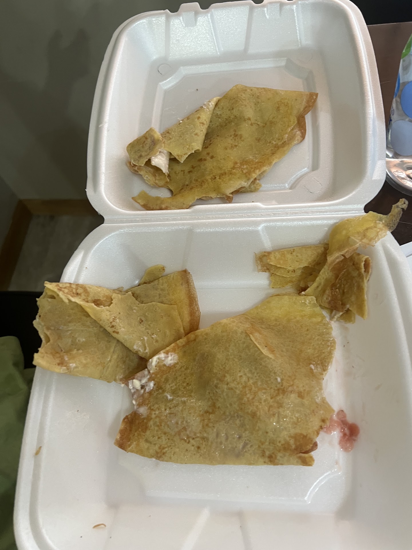 This morning my daughter asked if we could get carry out from this place because they had crepes. Knowing I’d be disappointed I didn’t ask my husband to order me anything. The crepes weren’t terrible but definitely not as pictured and advertised and there was hardly anyyyy filling in it. (I’ll include a picture) my husband of course over ordered and got himself a skillet, our son some eggs and sausage and me biscuits and gravy. The skillet was mediocre (you can get better quality at Detroit’s finest Coney Island for the same price) and my son kept asking for Scramblers ( the breakfast place that closed which should say a lot) he will eat anything too… the biscuits and gravy were probably the best thing I’ve had from this place and the biscuits aren’t the greatest but they work. Wish my whole DoorDash theory was true but unfortunately even with take out and a direct tip it was still...