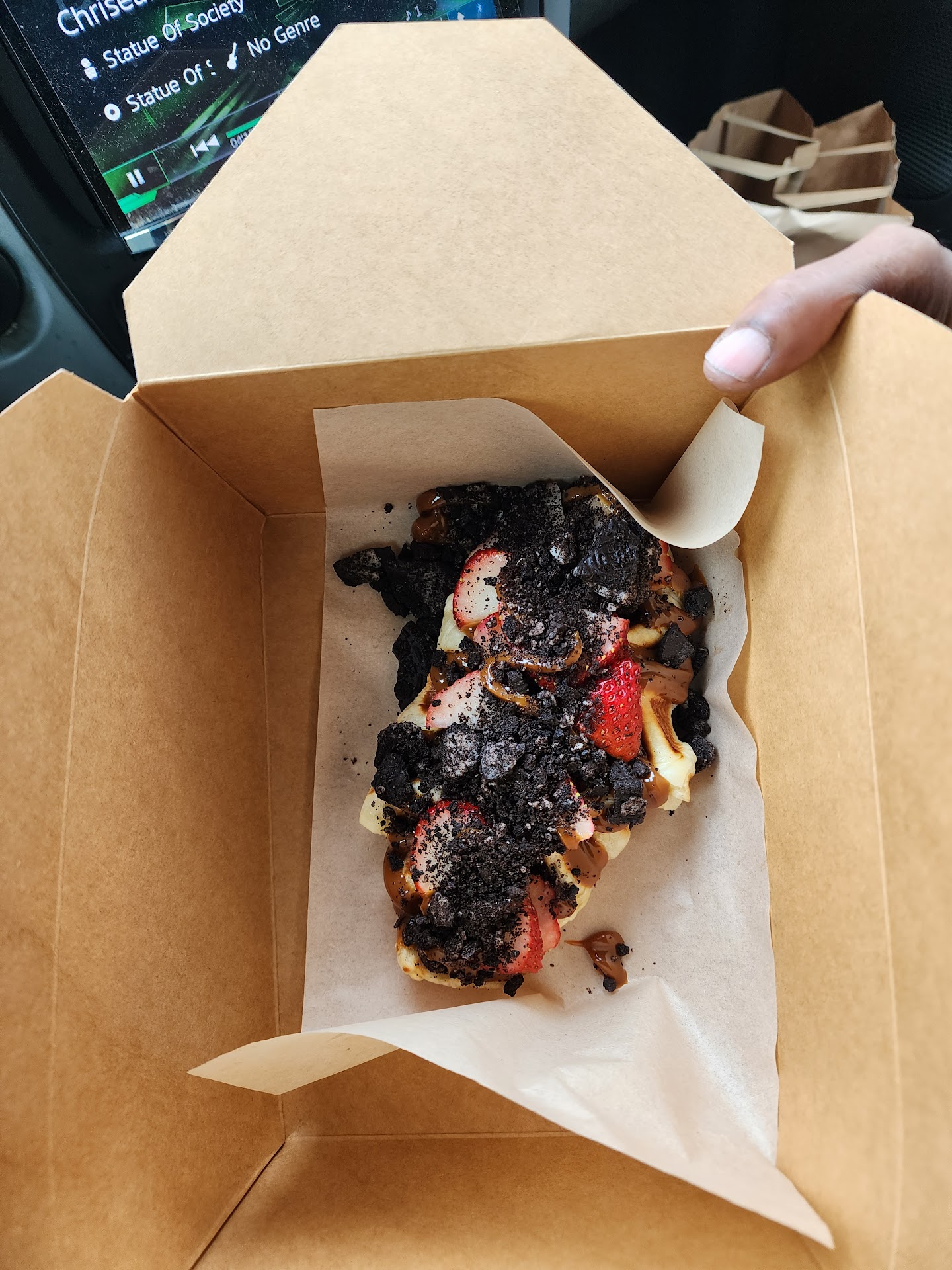 Read moreI have come back 4 times and each time I try something different and gf their menu. Today I planned on getting the ground beef filled puff pasty and a Carmel iced coffee both of which one had before but I saw him putting together a breakfast/desert type item ie a fresh made waffle topped with fruit and bites and sauce etc . So I switch it up and tried one with strawberries and blueberries , walnuts with a drizzle of Caramel . I think it’s my new favorite item lol .