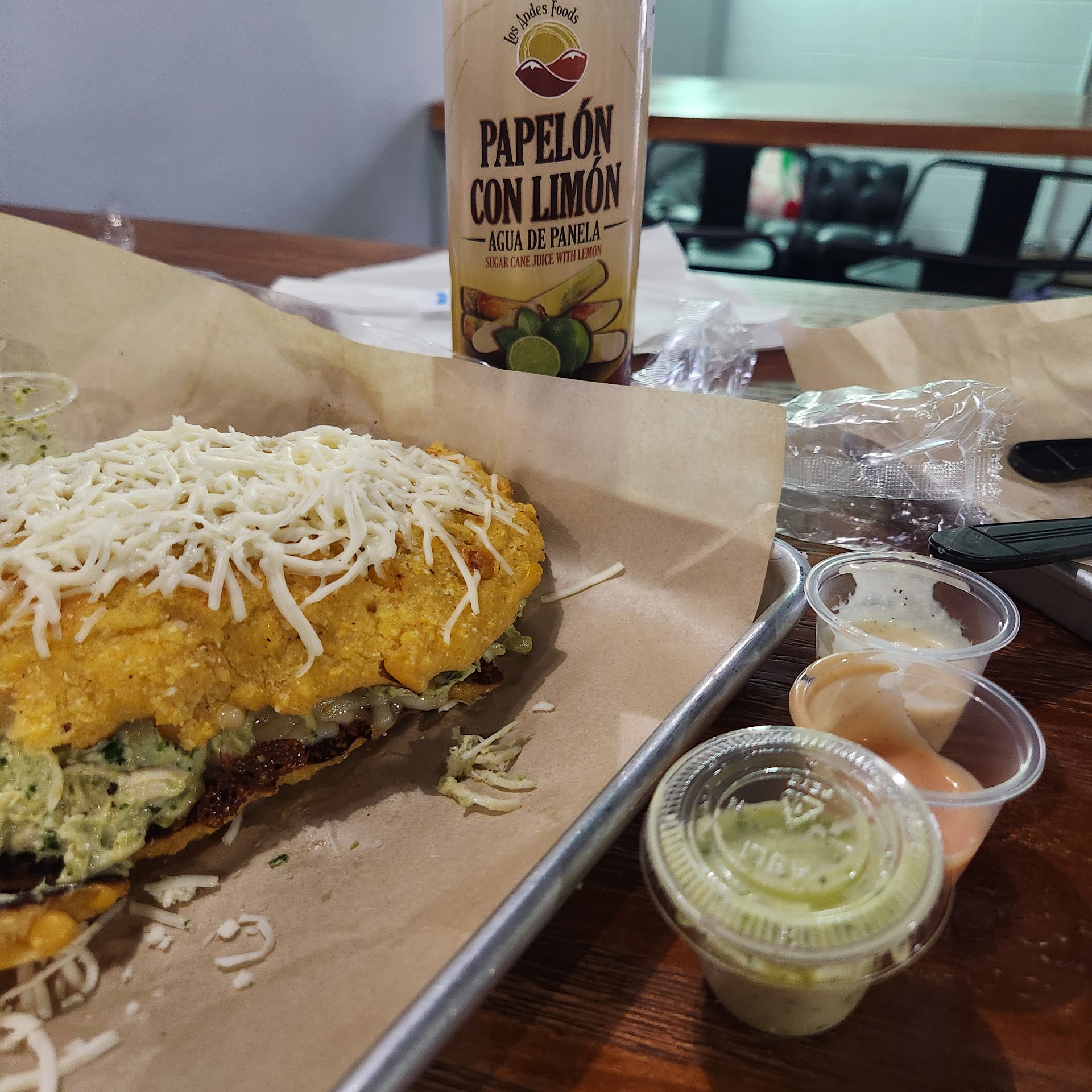 While you’re waiting for your order, you can browse their selection of authentic Venezuelan food. We had our two young kids with us, and they loved the corner toy kitchen setup. An extra bonus - the to go containers are made out of a cardboard material instead of styrofoam, which I really appreciate....
