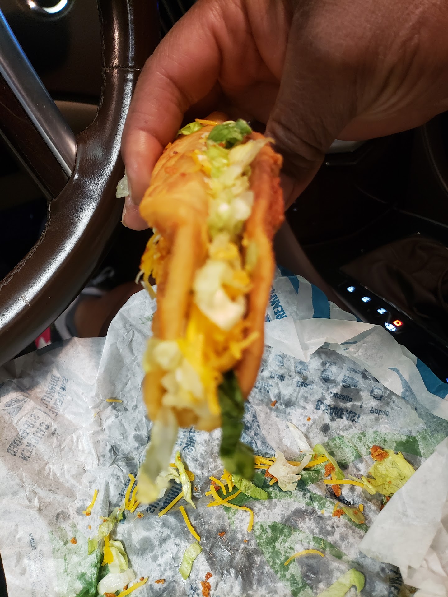 Update June 25: Sigh, a long line followed by not asking for the app code. I didn't get a receipt and my order was handed to me incorrectly and since I didn't have my receipt I couldn't verify if the order was just input incorrectly. Edit: today I went and half of the digital menu was not working. They have an AI setup to take your order so I couldn't even let someone know that the screen was out. So of course you can't see the entirety of the menu so if you wanted to order a combo oh well you better know what the menu is. So I opted to go inside. It is a weird turn so I had to go in the opposite direction and come all the way back around just to go into the Taco Bell. The inside was actually very clean but I guess they are taking the people out of working so you have to order at a kiosk. And then to pay you have to take your money to the counter and pay but they do have glass set up so that you can see all of the workers making food and kind of see how clean the area where they are working is. The worker who took my money was not very enthused didn't seem very happy to be working. And the young lady that handed me my food was very pleasant. I ordered to dine in and my dorito loco taco shell was already cracked by the time I sat down. And dipping burritos that I ordered or smashed together and almost fell apart when I took them a loose.