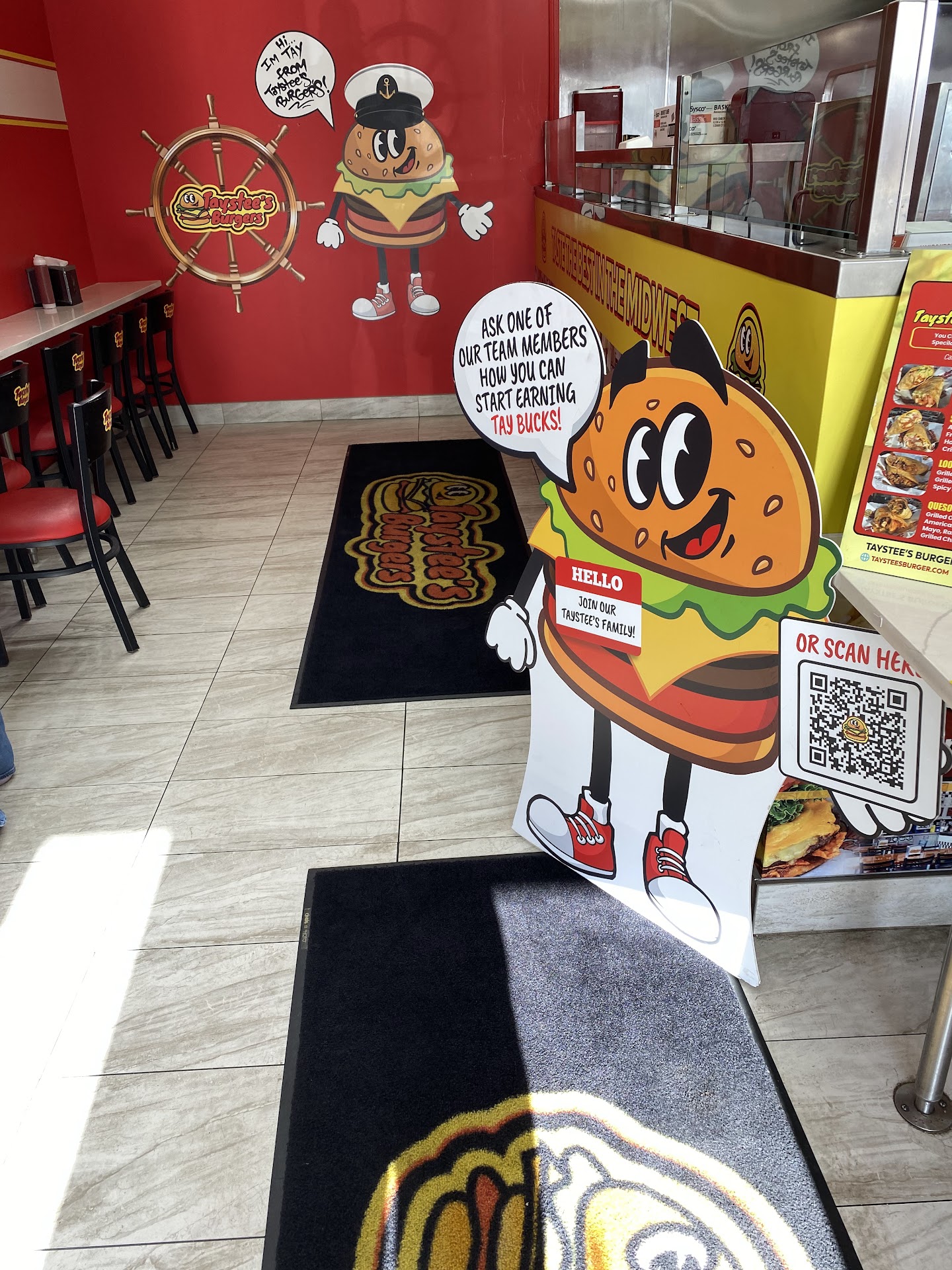 Read moreStopped in to try taystee burgers the other day. The atmosphere is fun, colorful and clean. We got our food to go, the main dining room on the one wall was all plastic fishing baits, which kind of have a very weird smell to them. Probably because they share the space with the gas station. The service was great, the girl who took our order was incredibly friendly and helpful and our food came was made pretty fast.