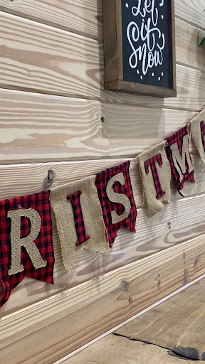 What a great vibe with the natural light wood paneling and counters, cool wall hangings with tongue-in-cheek quotes (see photo, some are for sale and handmade) and Magnolia Home-style plant vases on the wall.