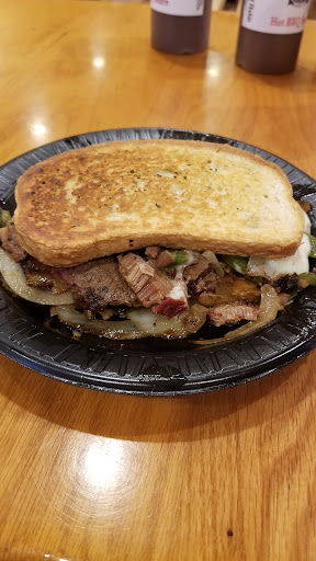 I ordered the country cowboy or the cracker cowboy.... It was a huge mess of brisket on garlic bread ($1 upcharge) topped with jalapeños, onions, and cheese. No sauce needed, but if you want some, I recommend their hot BBQ for just enough kick and incredible flavor.. We also ordered a few sides to try out. We had the collard greens which are made in-house, not in-can, then fried okra which was delicious, and my favorite side, was the sweet potato soufflé. Our total bill came to about $20 total for my sandwich, all the sides listed, my wife's chopped pork sandwich, one soft drink, and a water.
