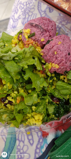 Had the plate of 4 items and the next day had the cauliflower and kale beet walnut quinoa salad. As a foodie, and raw vegan, it was just average. The salad was a bed of iceberg with kale and toppings on top. With a sweet honey mustard vinaigrette mixture dressing.which seemed odd with beets and quinoa-was expecting a kale salad. The hot dish was a mix of bbq tofu, and tofu another way and rice, peas , other stuff basically it was a roti without the shell. A sweet Bbq sauce overpowered the entire dish. The cauliflower was ok, ketchup as a condiment didn't really elevate the dish. The desserts are good. I think it's an acquired...
