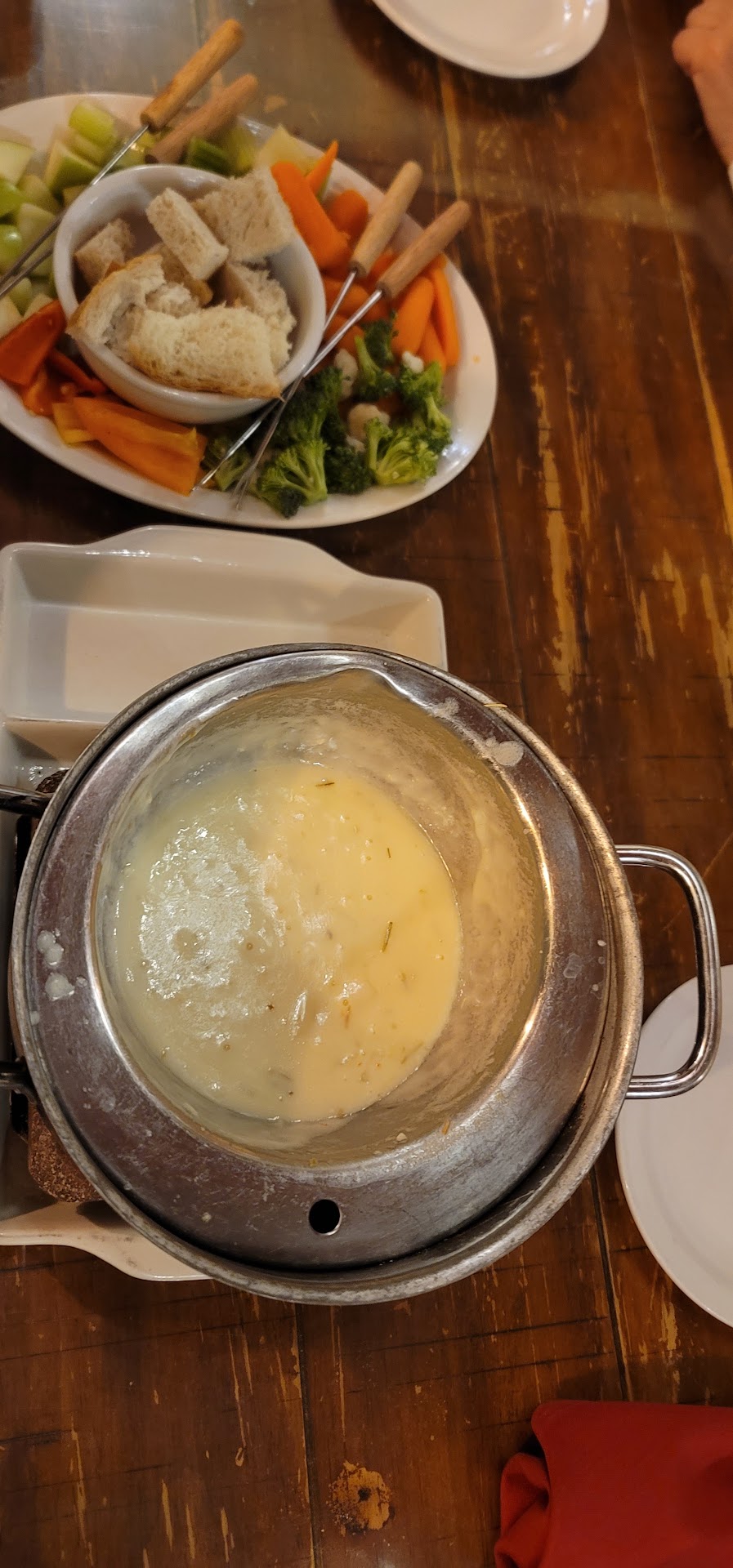 Read moreThis is a very unique experience! Up front, be prepared to spend some money on dinner. Now be prepared for an experience unlike any other. This is a very welcoming restaurant with an upscale feel. Plasma cut metal signage and a really enjoyable interior with open ceiling design. Both booths and tables, all tiled (for good reason) and an induction burner built in to every table. No worries- an induction burner uses a magnetic current to excite the molecules in a steel pan to make it heat up. If it ain't steel, it don't get hot! The treat here is in every phase of dining. Start off with a cheese fondue appetizer. A plate of bread cubes along with diced apple, celery, and carrot is presented to the table. Your server will cook the fondue for you in a double boiler. You choose the fondue as each comes with a different combination of cheeses. After the fondue, enjoy steak, chicken, and/or fish seared in the kitchen and then brought to your table on top of a 600°F stone. It is literally cooking your own food at the table to your preferred doneness. The beef hails from grass-fed cattle raised in nearby Kanab, UT. My boneless ribeye was exceptionally tender, melt in your mouth cut, well seasoned, and served with a creamed horseradish and what tasted like Heinz 57 sauce. My son's sirloin was also very tender, moist, well seasoned, and served with that 57 sauce and a teriyaki sauce. Most of his steak was sliced, dipped in the teriyaki, then cooked to doneness on the stone. It was really good!! The other half got the chicken. She thoroughly enjoyed it. We were told we would be so busy with our meats, the sides would get cold...aaaaaaand they did. Lol! No worries though, because we just put them on the now slightly cooled stones, warmed the sides (nutmeg carrots, real mashed potatoes, and/or garlic rice) and then ate them off the stone piping hot! We ended with a dessert fondue. The dessert plate is brought out with strawberry halves, whole grapes, one slice of cheesecake, rice crispy treats, marshmallows, and cream puffs. The server again brought out a double boiler and made our fondue in front of us. Wonderful dinner and the leftover chocolate fondue is here with me in a small container. I keep wondering if I can dip my breakfastin it tomorrow morning. Wait staff was excellent. Very accommodating. Great dinner. Will come...