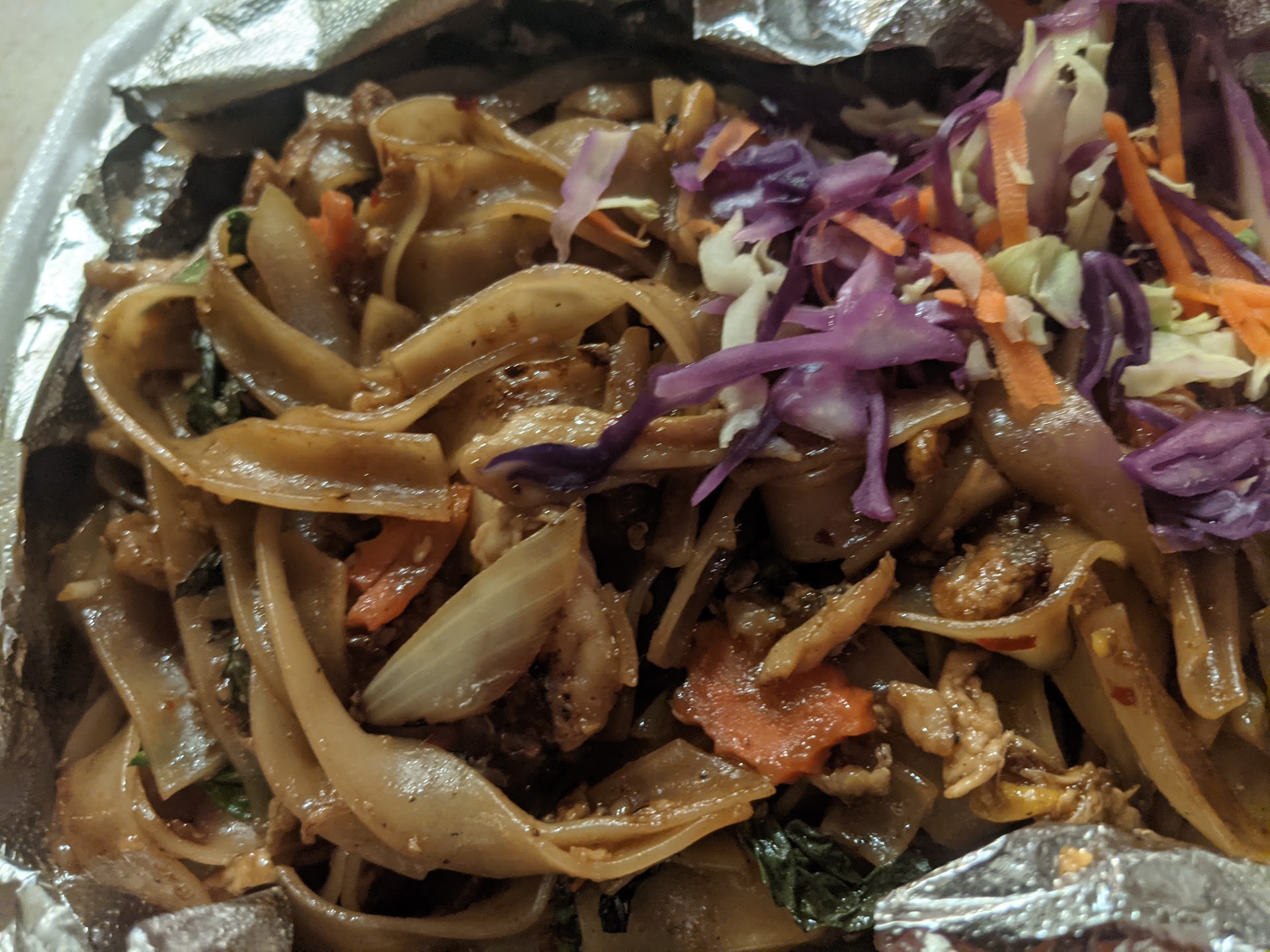 During our first visit, the restaurant was pretty packed. The service was inconsistent, and the decor/atmosphere appeared unfinished. When we ordered our food, the spring rolls were clearly not fresh and had a mushy texture. The yellow curry was pretty bland, but the Pad Thai had an interesting BBQ flavor to it that we both enjoyed. We ultimately decided that maybe they just needed time to tighten things up a little.